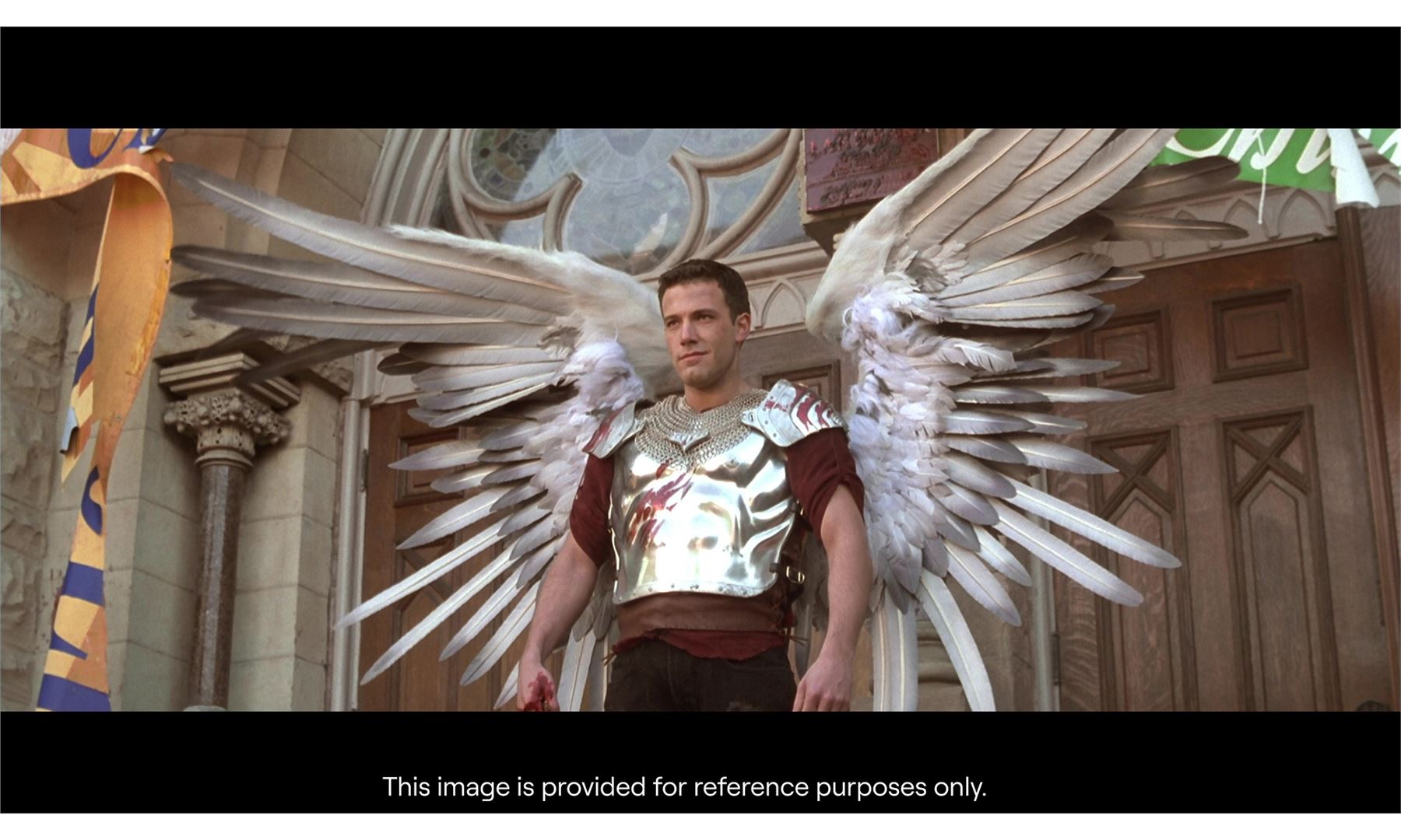 DOGMA (1999) - Cable-Controlled Animatronic Angel Wings - A pair of cable-controlled animatronic angel wings from Kevin Smith's Dogma. The seraph Metatron (Alan Rickman) revealed his gray angel wings to Bethany (Linda Fiorentino) to prove the legitimacy of his words. Later, the fallen angel Bartleby (Ben Affleck) appeared with his wings after massacring the parishioners and bystanders at the rededication ceremony.