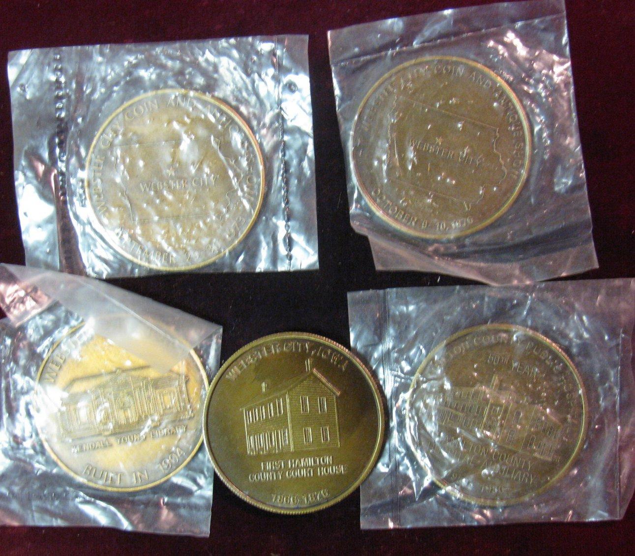 1031. (5) Different Webster City, Iowa Bronze Coin Club Medals. 39mm. Gem BU.