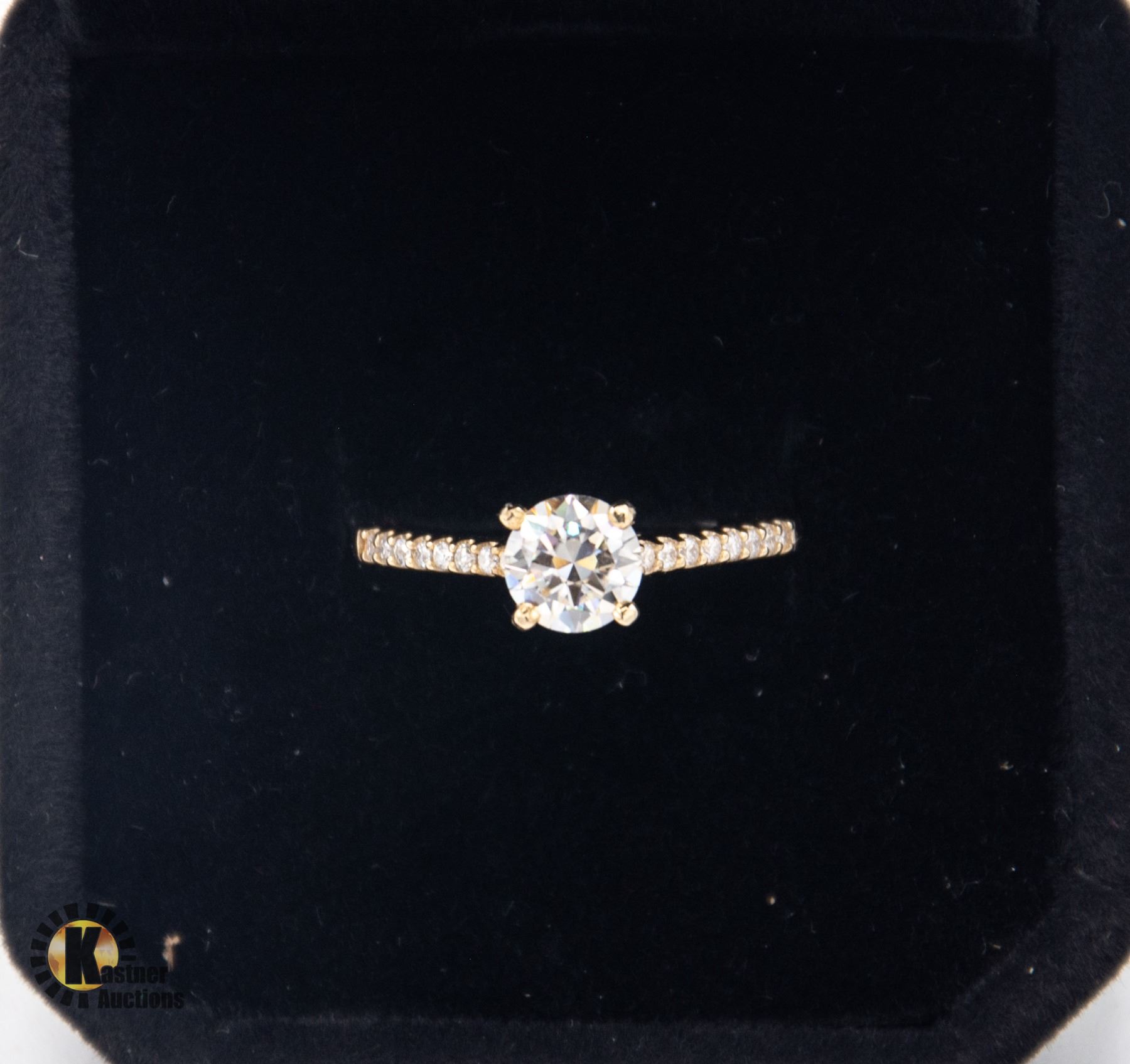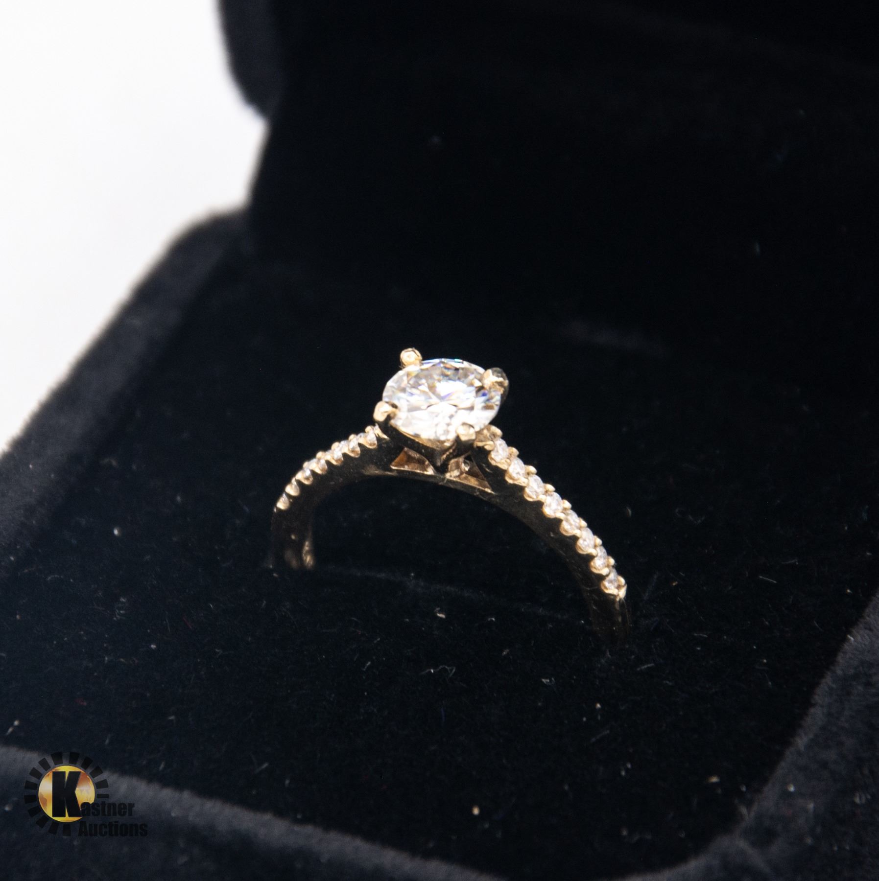 ROUND BRILLIANT CUT MOISSANITE STONE VVS D COLOR SET IN CENTER WITH MULTIPLE STONES SET IN SHANKS SIZE 5.5     **ALL ITEMS MUST BE REMOVED BY 5PM SATURDAY, NOVEMBER 23RD 2024. ALL REMAINING ITEMS WILL BE SUBJECT TO A $6.00 PER DAY STORAGE CHARGE. ANY ITEMS REMAINING AFTER MONDAY, DECEMBER 9TH 2024 WILL BE CONSIDERED FORFEITED. NO REFUNDS WILL BE ISSUED FOR FORFEITED ITEMS. TO SCHEDULE A PICK UP APPOINTMENT CLICK HERE