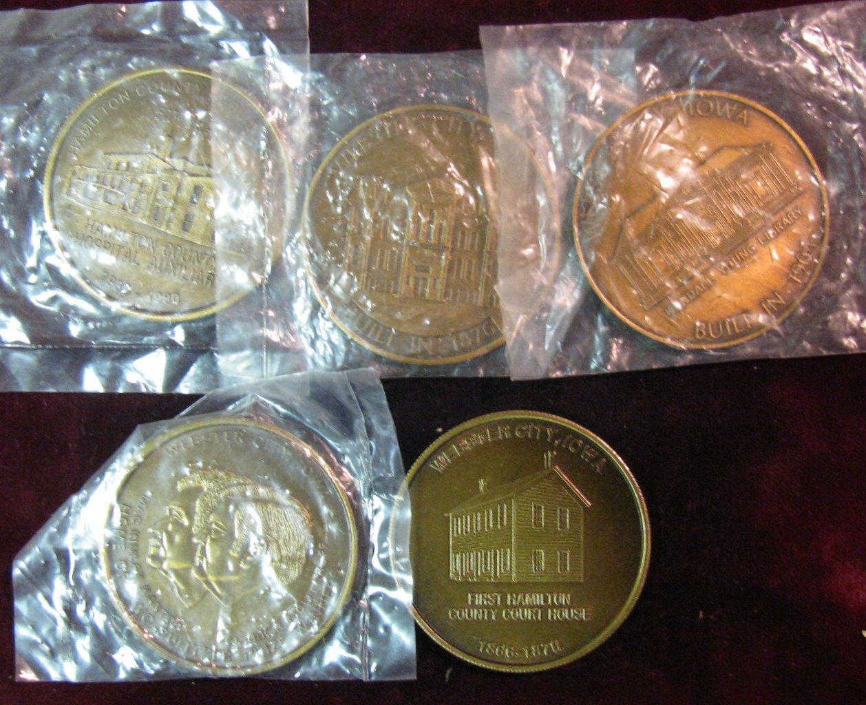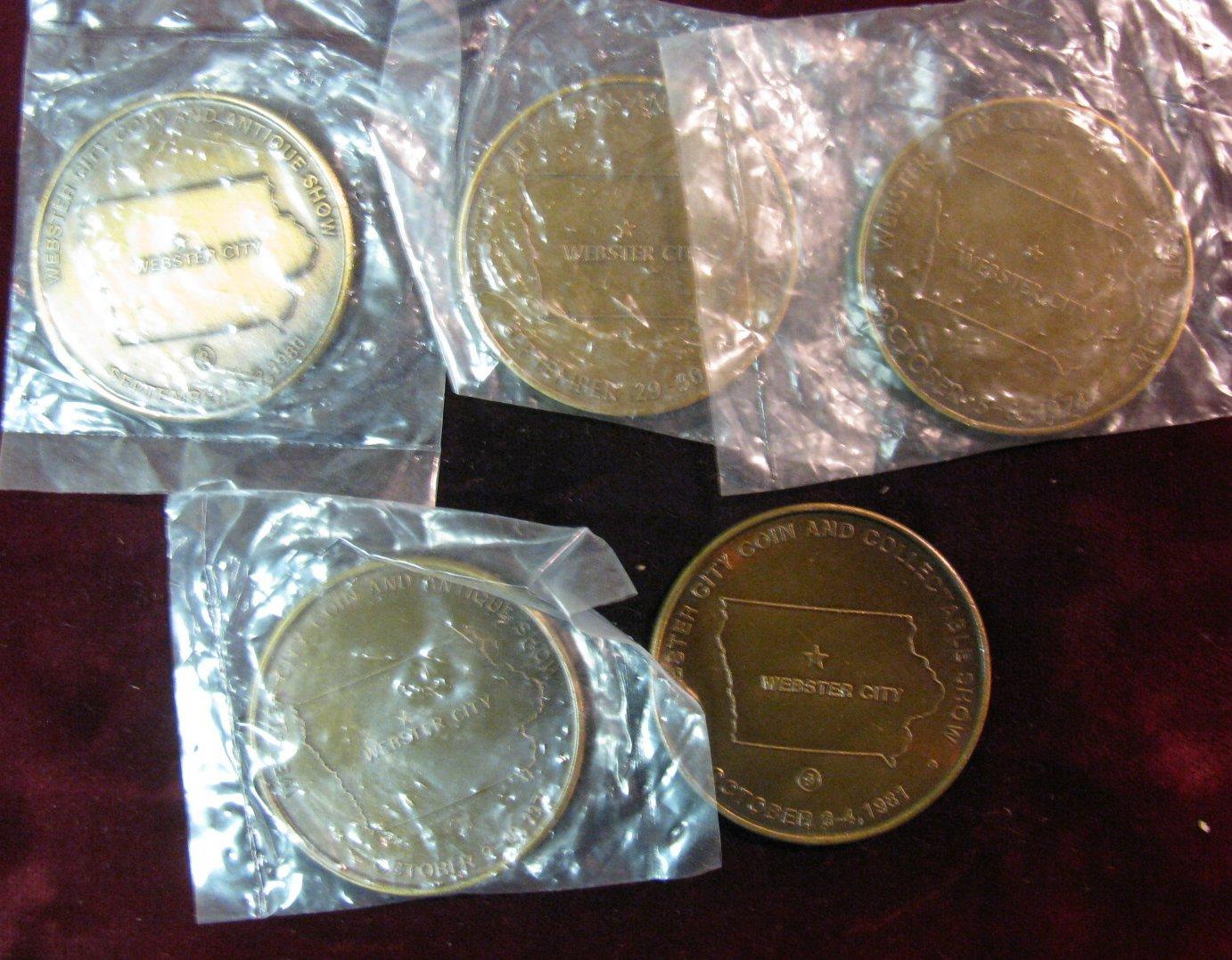1033. (5) Different Webster City, Iowa Bronze Coin Club Medals. 39mm. Gem BU.
