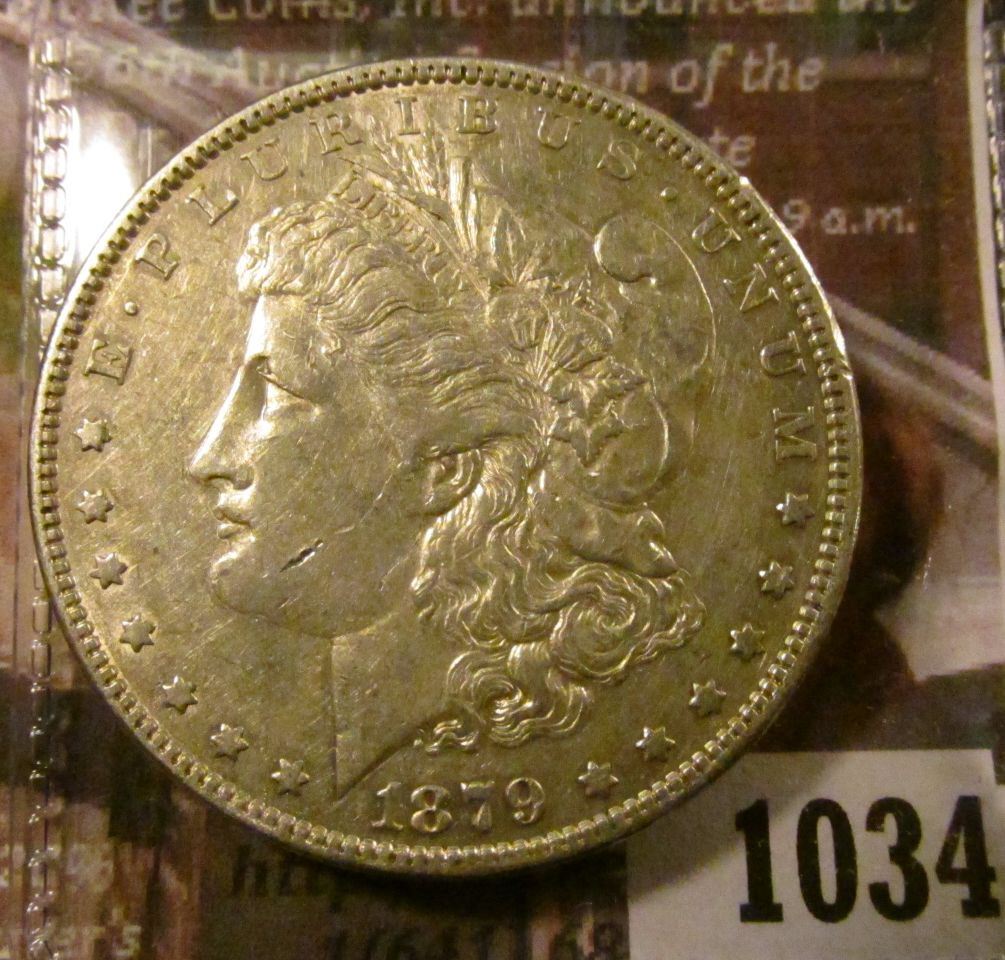 1034 . 1879 Morgan Silver Dollar, AU, value $40