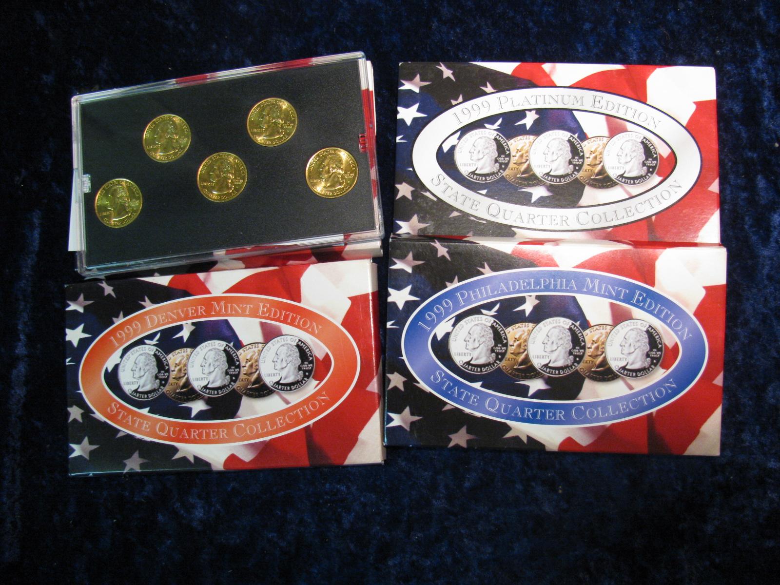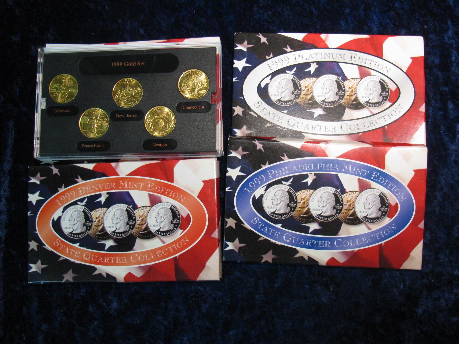 1034. 1999P, D, Gold & Platinum Statehood Quarter Sets. In Plastic Holders and Boxes.