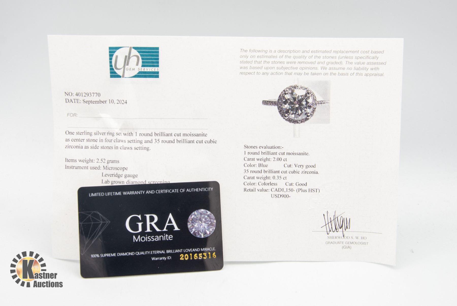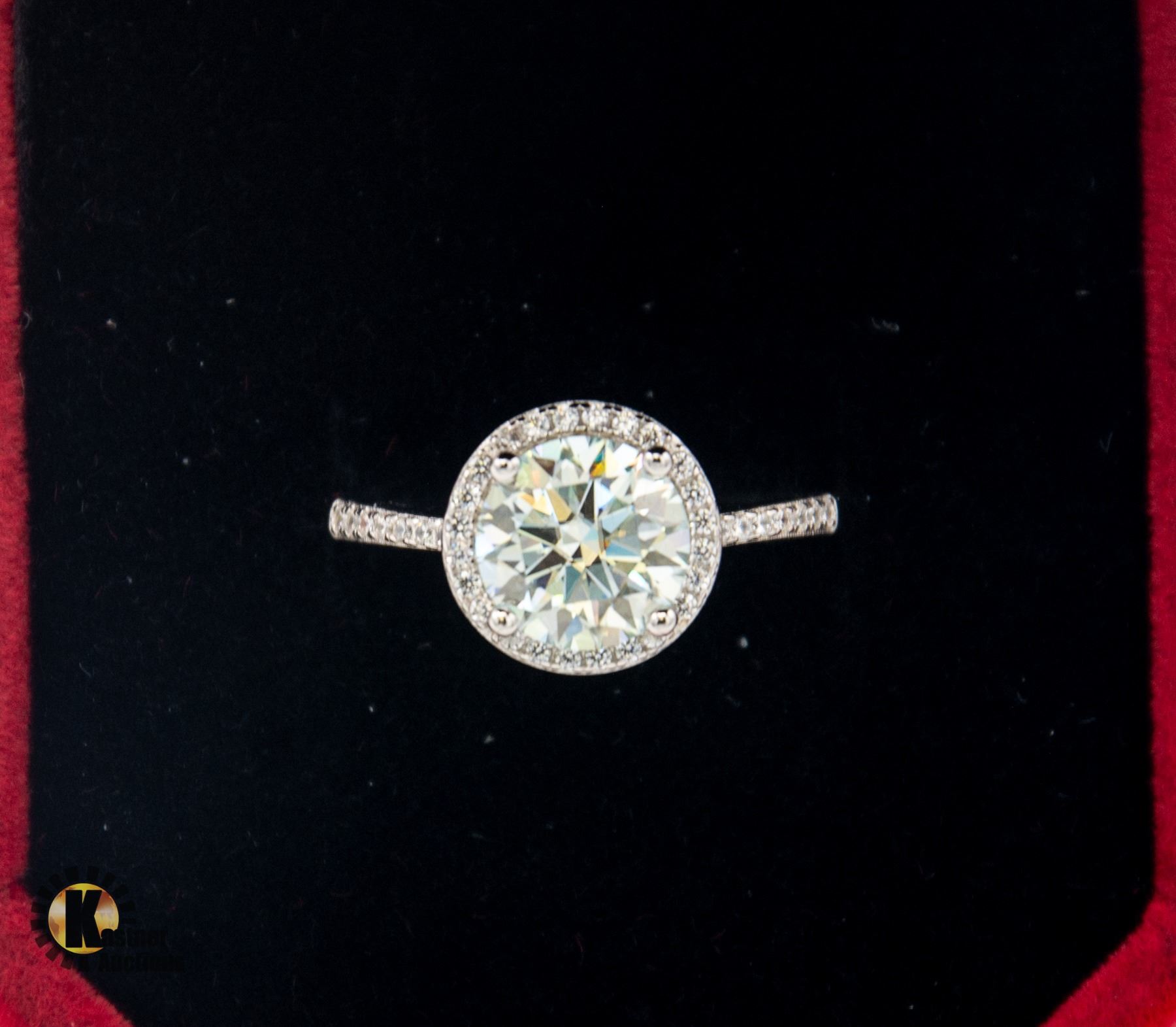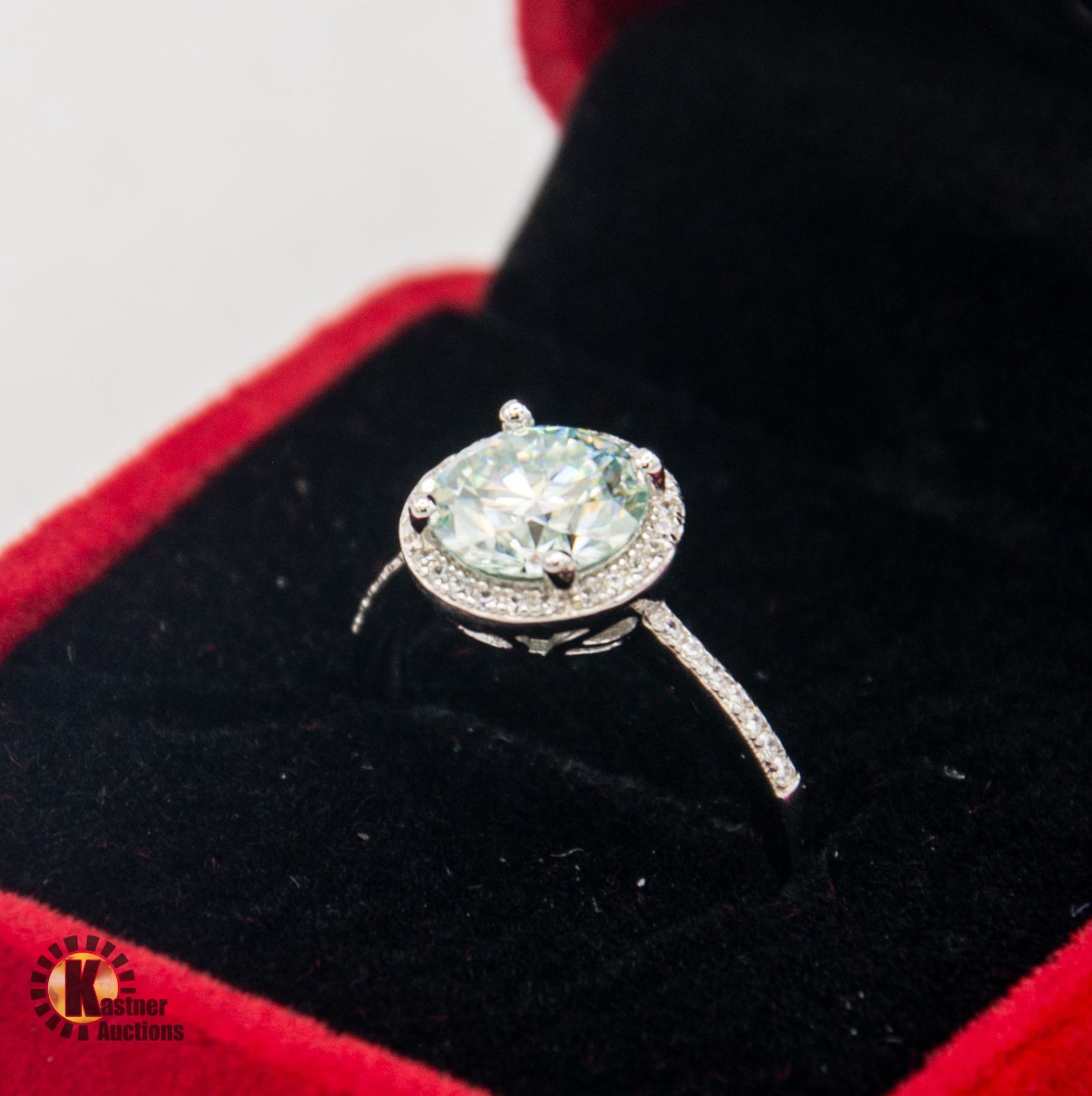 MOISSANITE STONE VVS D COLOR SET WITH 35 ROUND BRILLIANT CUT CUBIC ZIRCONIA SET IN ROUND HALO AND ON SHANK WITH THE RING SET IN 925 SILVER RING SIZE ADJUSTABLE RETAIL VALUE 1,150.00