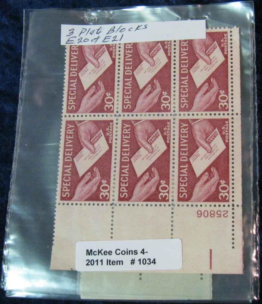 1034. E-20 Plate Block of 6 and (2) Plate Blocks E--21.
