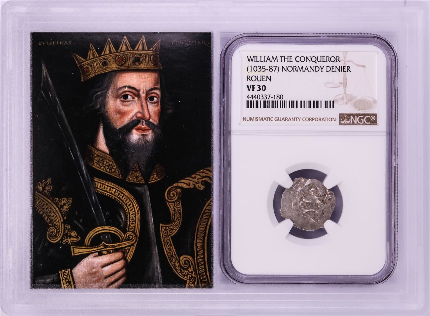 One 1035-87 William The Conqueror Normandy Rouen Denier Coin NGC VF30 w/ Story Box. NGC Certified.