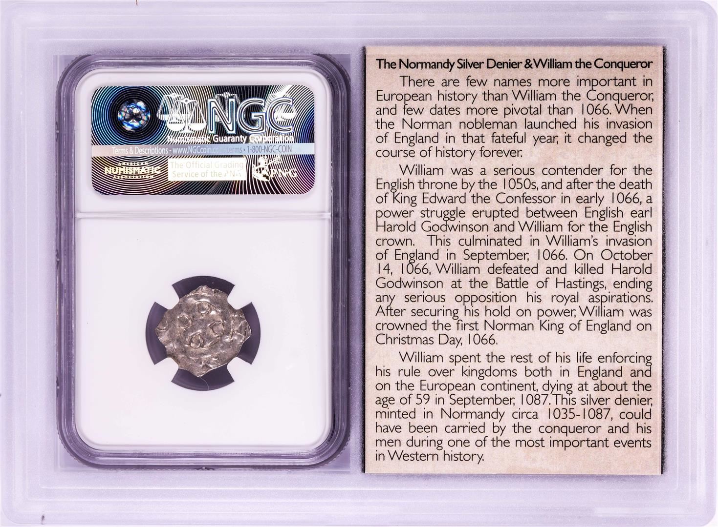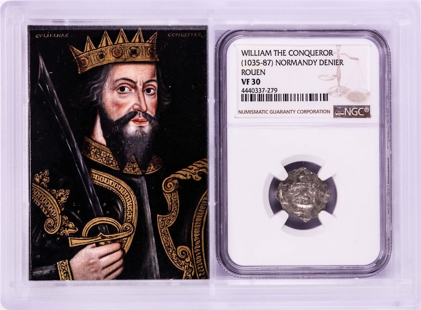 One 1035-87 William The Conqueror Normandy Rouen Denier Coin NGC VF30 w/ Story Box. NGC Certified.