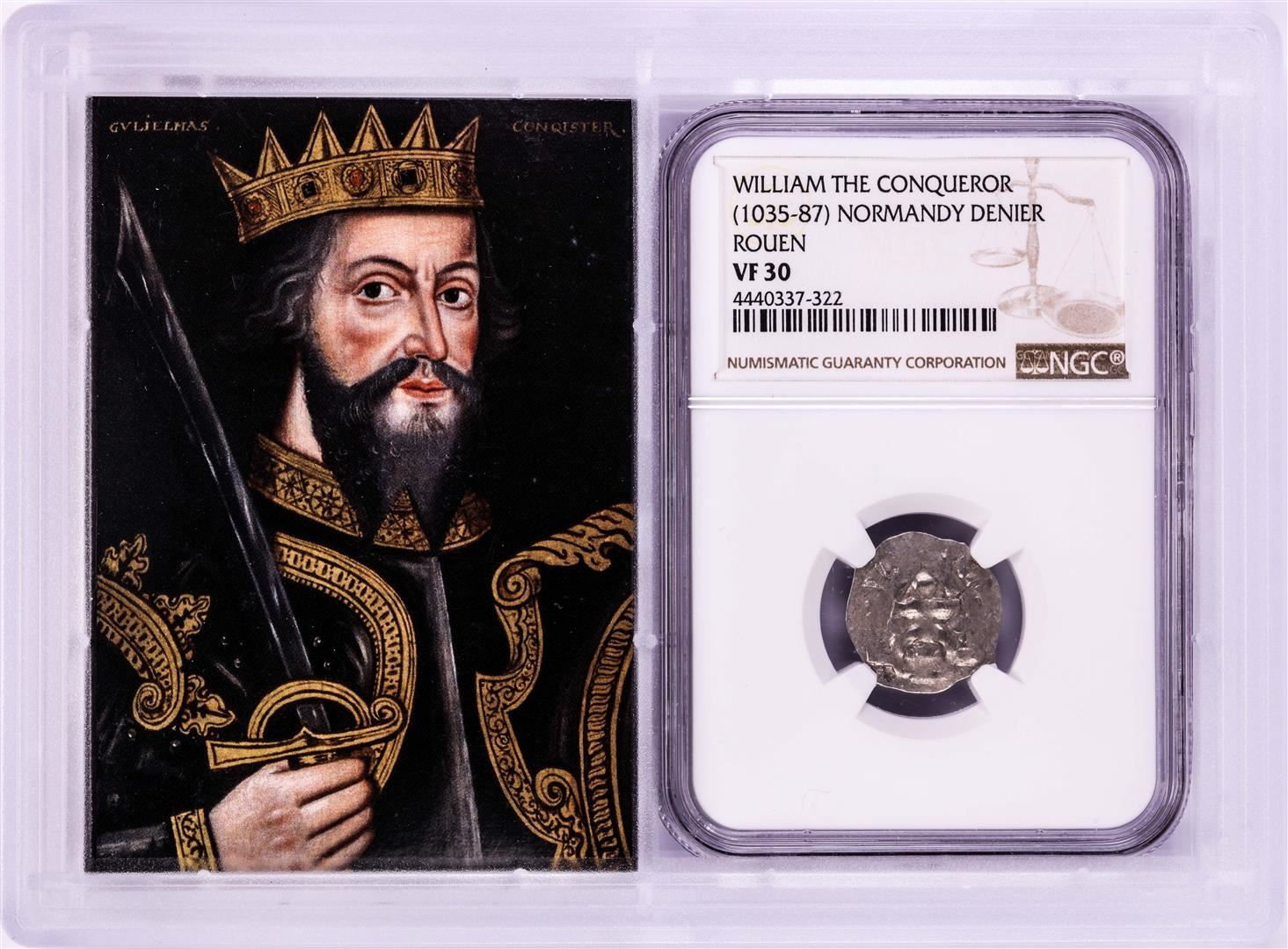 One 1035-87 William The Conqueror Normandy Rouen Denier Coin NGC VF30 w/ Story Box. NGC Certified.