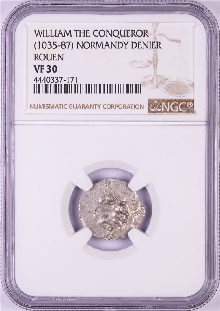 One 1035-87 William The Conqueror Normandy Rouen Denier Coin NGC VF30. NGC Certified.