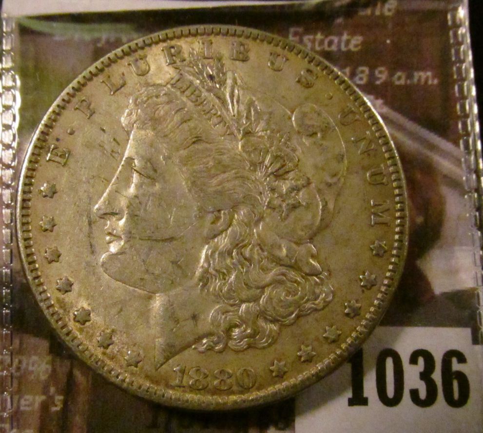 1036 . 1880-O micro O Morgan Silver Dollar, AU, value $48