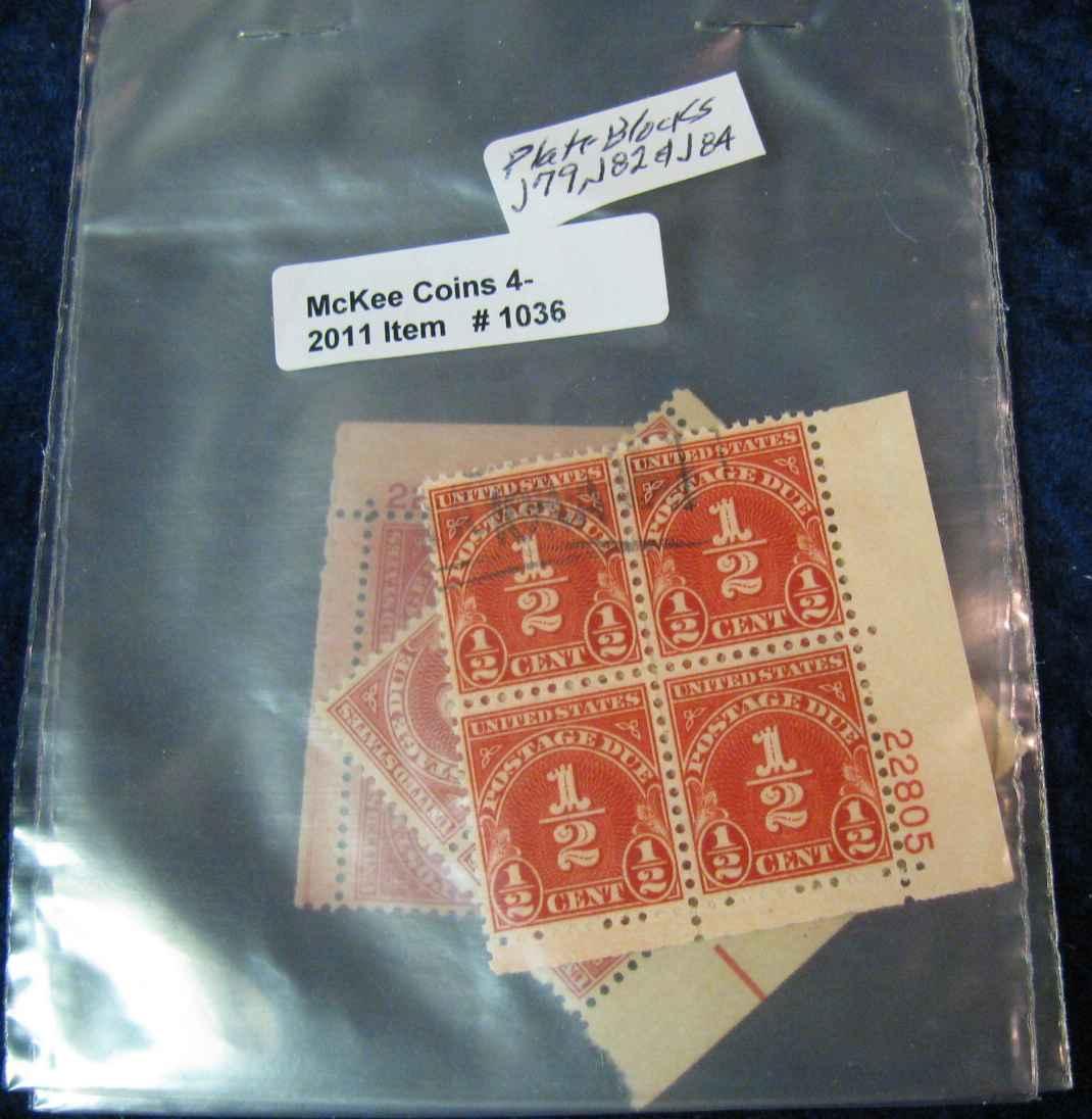 1036. J-79 top 2 Precancil, J-82 M.N.H. & J-84 M.N.H. Plate Blocks.