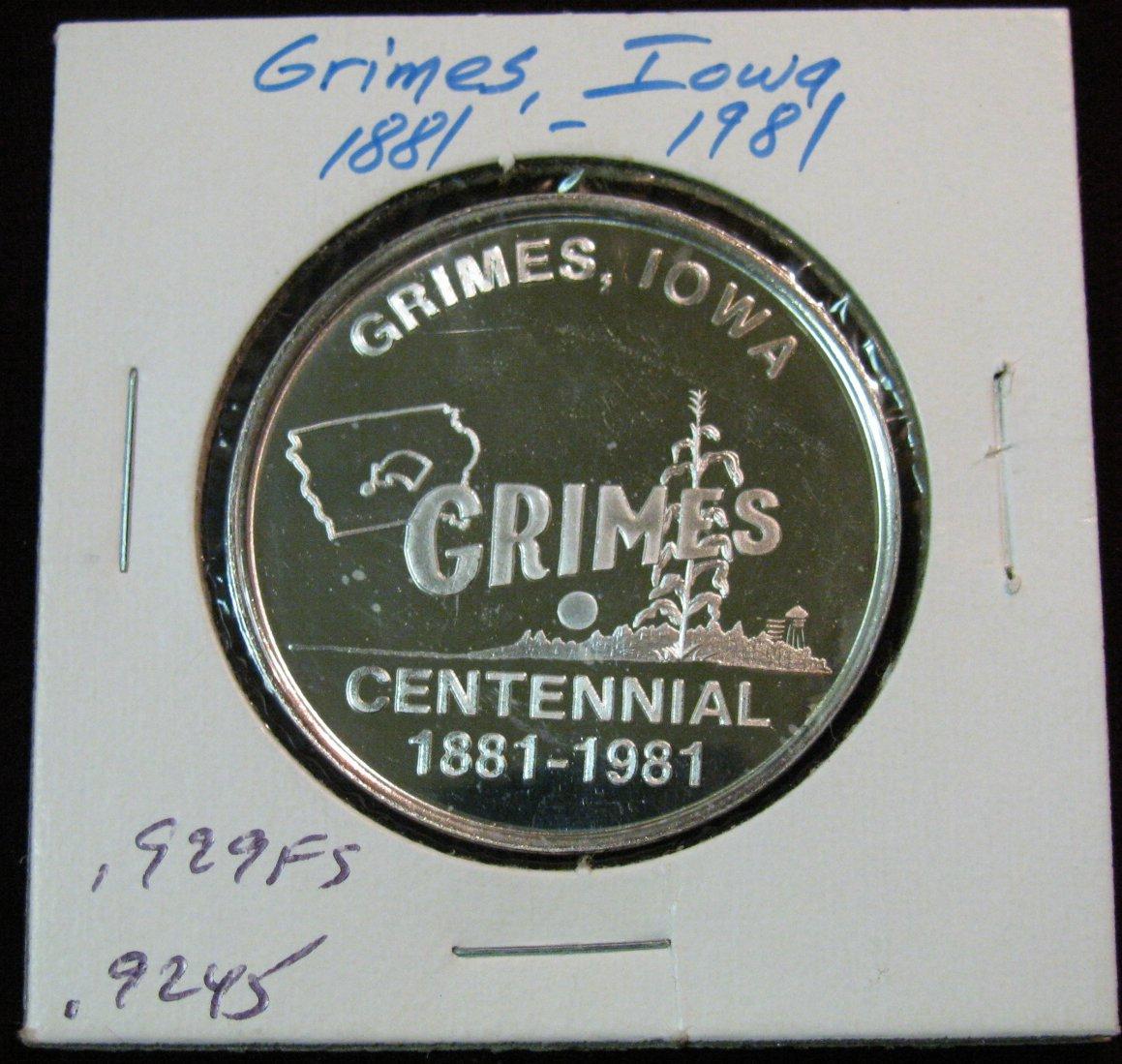 1037. 1881-1981 Grimes, Ia. Proof .999 FS Centennial Medal. Weighs .9245 oz.
