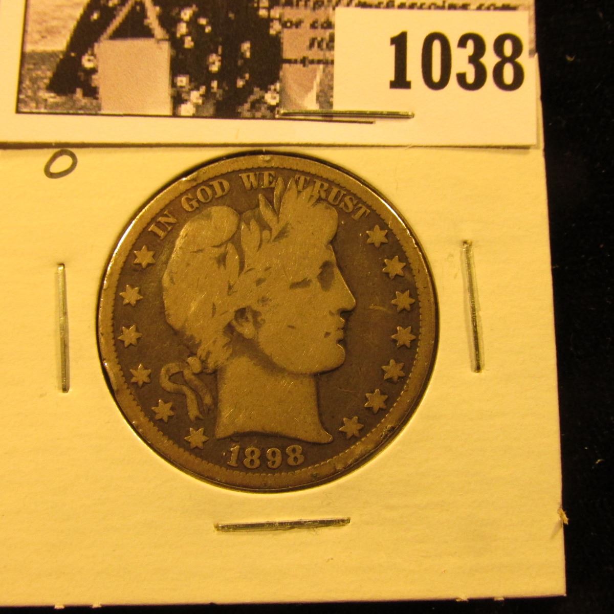 1038 . 1898 O U.S. Barber Half Dollar, Good with a few rim dings.