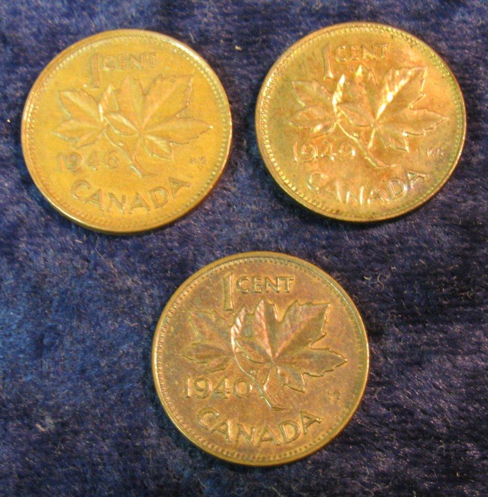 1038. 1940 AU, 46 AU & 49 Unc. Canadian Cents.