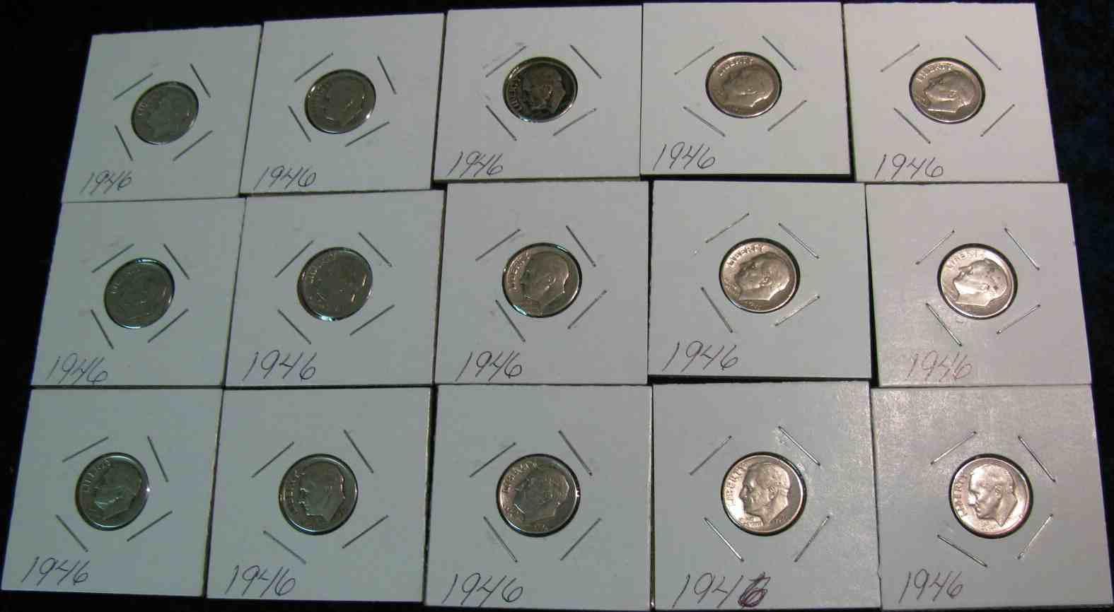 1039. (15) 1946P Roosevelt Dimes. VG-F.