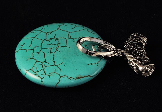 104.13CTW NATURAL TURQUOISE ROUND PENDANT **|**|** 40X8MM IN SIZE PENDANT WITH TURQUOISE GEMSTONE AND METAL ILLUSION ; MSRP: $100