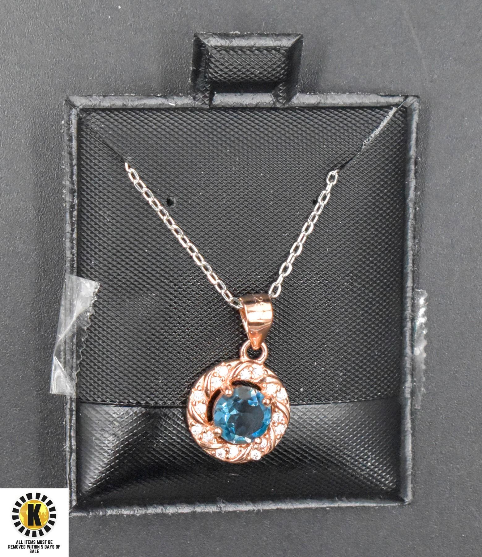 #104-NATURAL SWISS BLUE TOPAZ ,CZ PENDANT
