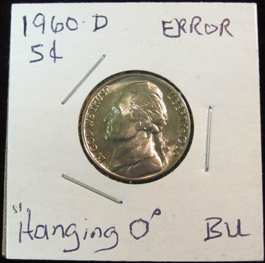 1040. 1960D Jefferson Nickel BU Error extra Metal over 0 in Date.