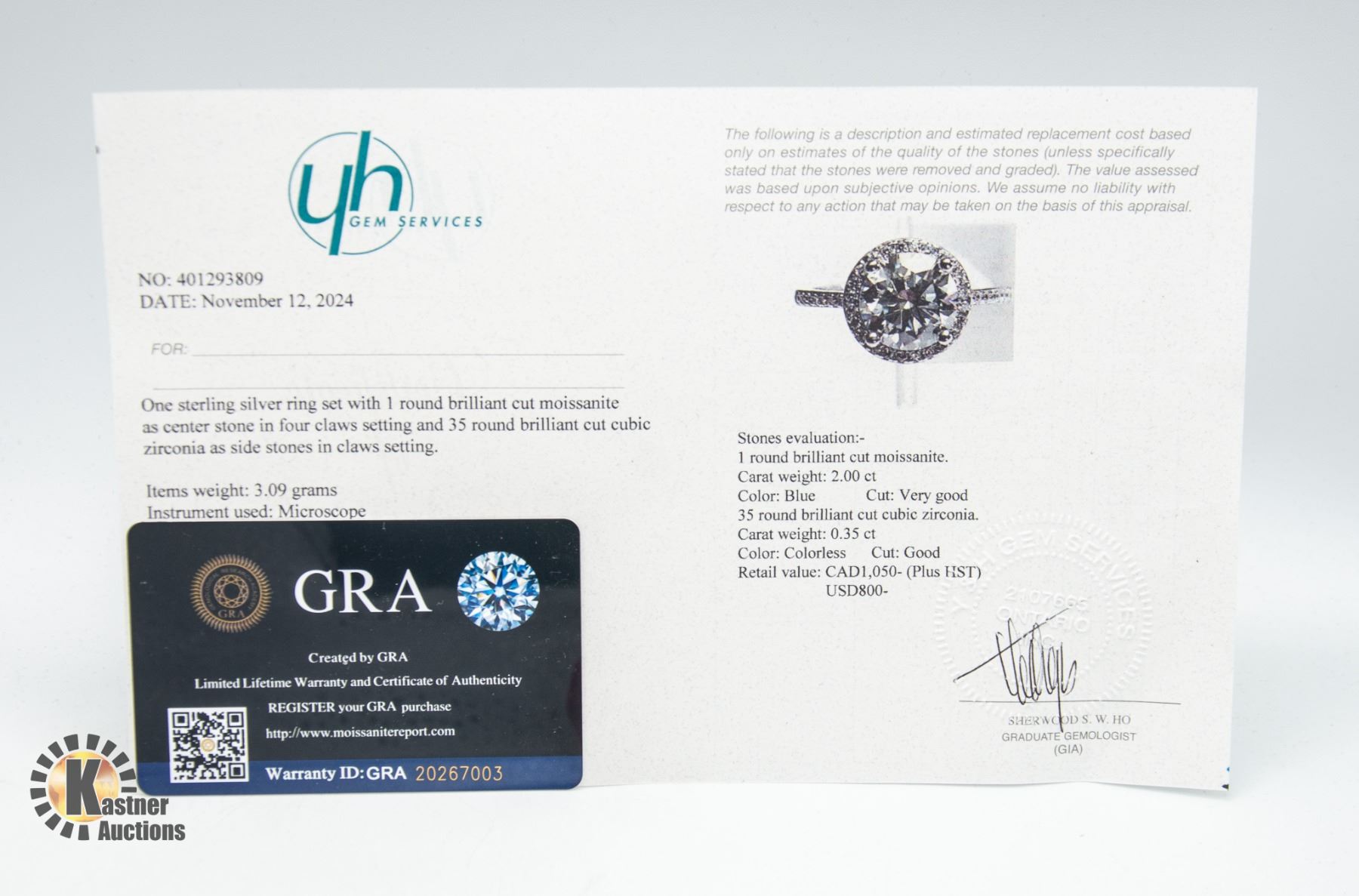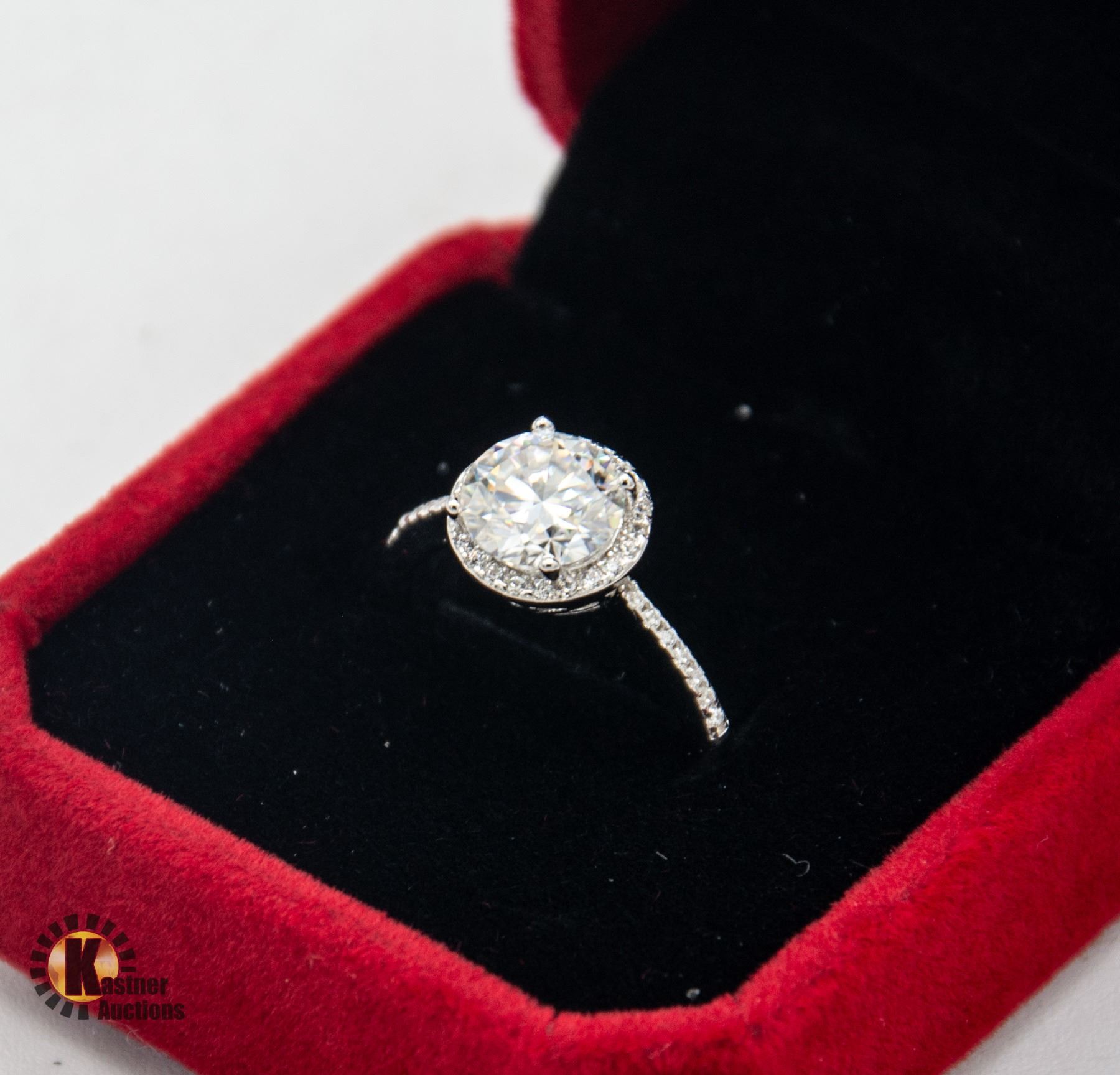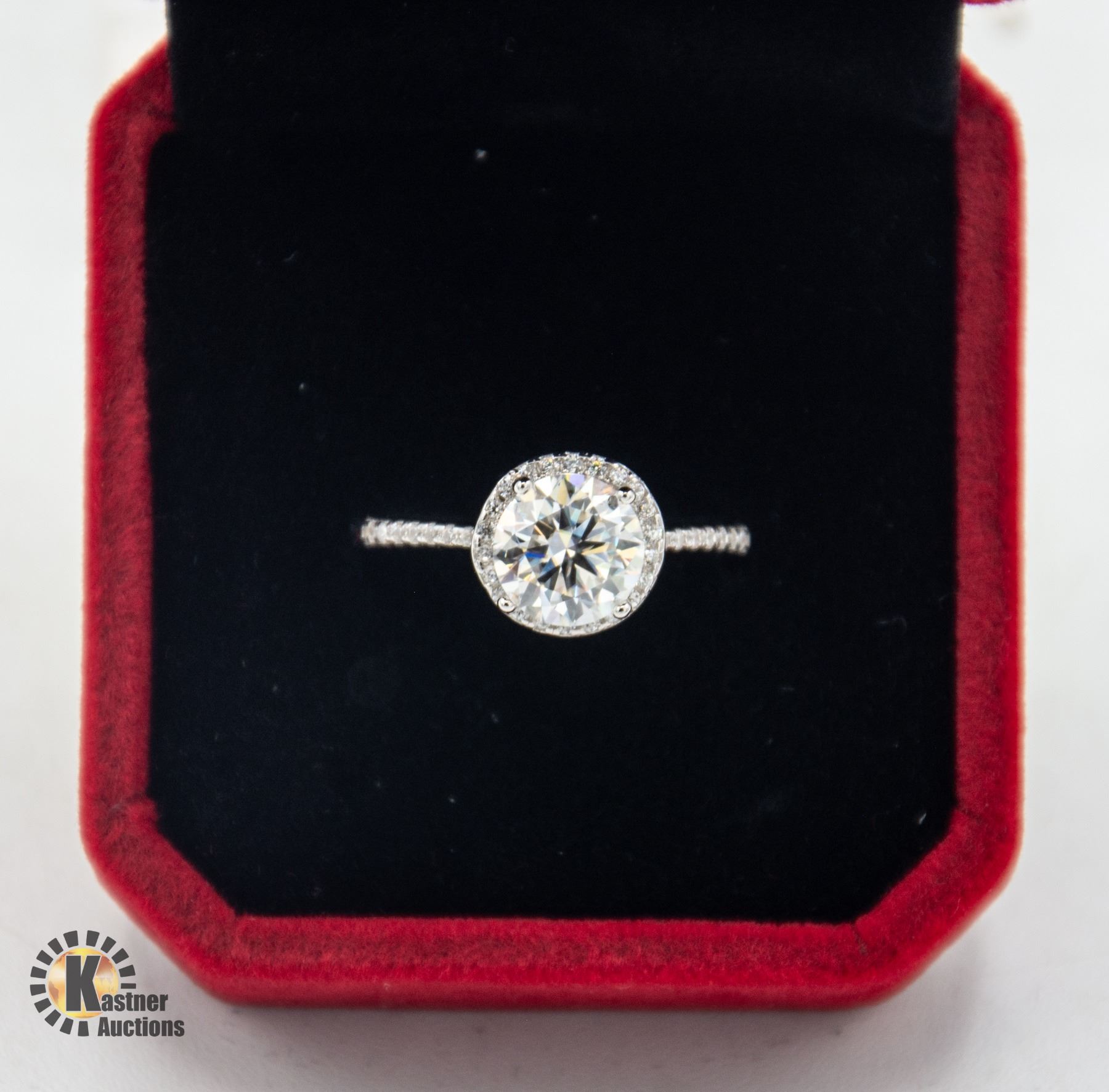 MOISSANITE STONE VVS D COLOR SET IN CENTER OF ROUND HALO SET IN 925 SILVER RING SIZE 7.5 RETAIL VALUE $1,050.00 **ALL ITEMS MUST BE REMOVED BY 5PM SATURDAY, NOVEMBER 30TH 2024. ALL REMAINING ITEMS WILL BE SUBJECT TO A $6.00 PER DAY STORAGE CHARGE. ANY ITEMS REMAINING AFTER MONDAY, DECEMBER 16TH 2024 WILL BE CONSIDERED FORFEITED. NO REFUNDS WILL BE ISSUED FOR FORFEITED ITEMS. TO SCHEDULE A PICK UP APPOINTMENT CLICK HERE