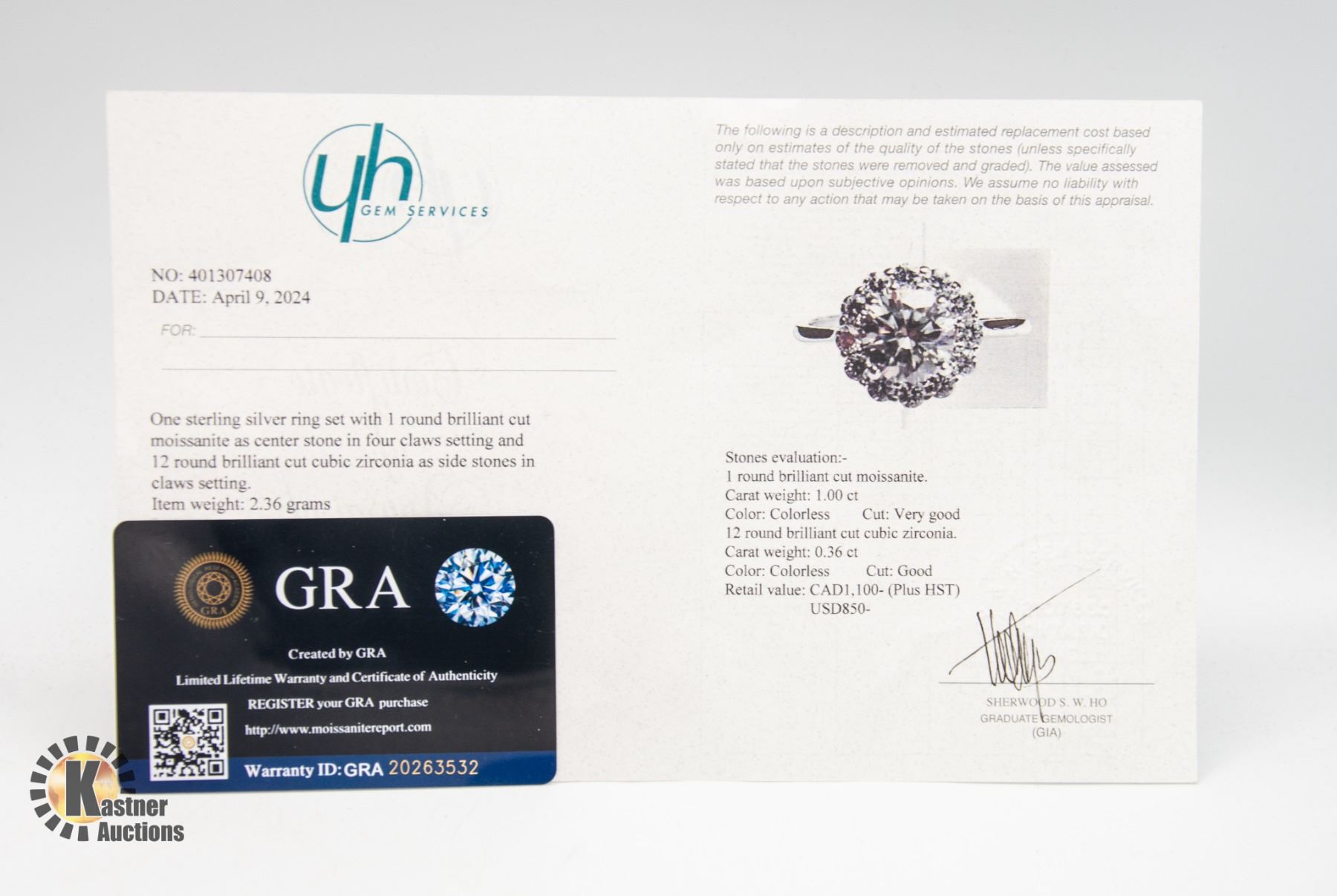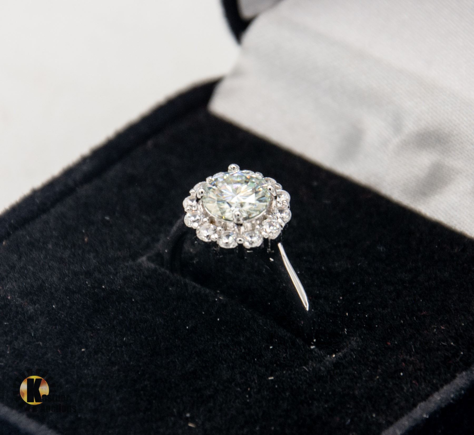 MOISSANITE STONE SET IN ROUND SHAPED HALO WITH 36 CT TW CZ’S SET IN 925 SILVER RING SIZE ADJUSTABLE RETAIL VALUE $1,100.00 **ALL ITEMS MUST BE REMOVED BY 5PM SATURDAY, DECEMBER 7TH 2024. ALL REMAINING ITEMS WILL BE SUBJECT TO A $6.00 PER DAY STORAGE CHARGE. ANY ITEMS REMAINING AFTER MONDAY, DECEMBER 23RD 2024 WILL BE CONSIDERED FORFEITED. NO REFUNDS WILL BE ISSUED FOR FORFEITED ITEMS. TO SCHEDULE A PICK UP APPOINTMENT CLICK HERE