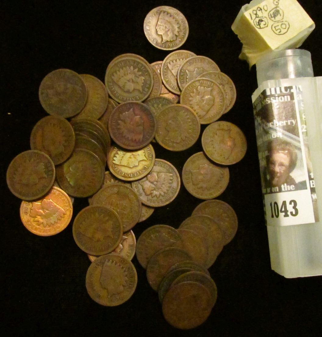 1890 Solid Date Roll of (50) U.S. Indian Head Cents stored in a plastic tube. All solid Good condition.