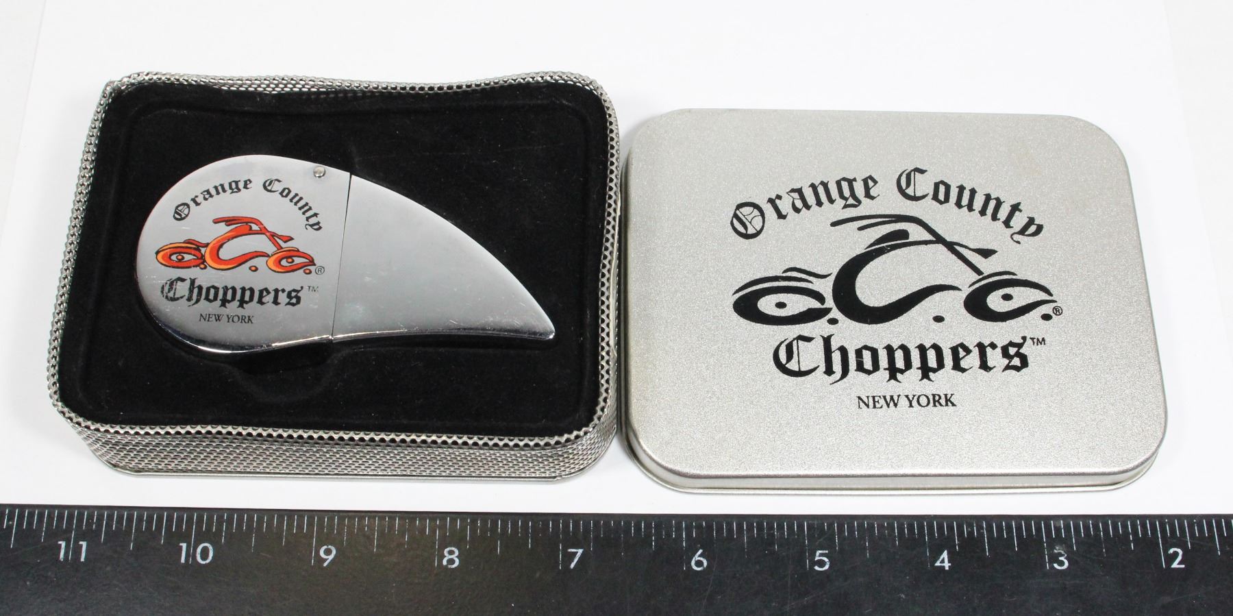 VINTAGE CASED LIGHTER IN WORKING CONDITION ORANGE COUNTY CHOPPERS NEW YORK