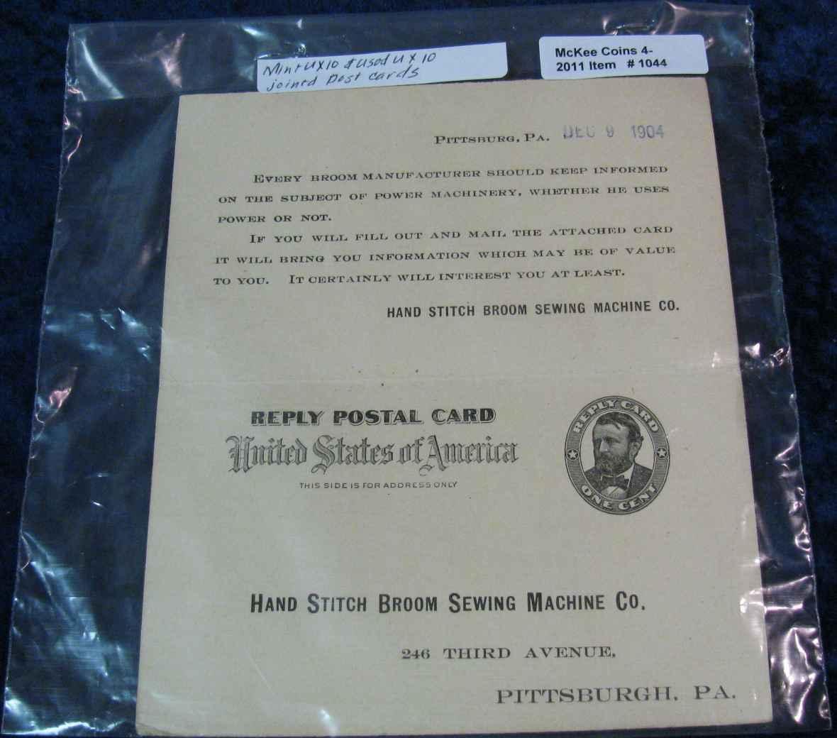 1044. Attached Pair UX-10 Post Card 1-Used & 1-Unused.