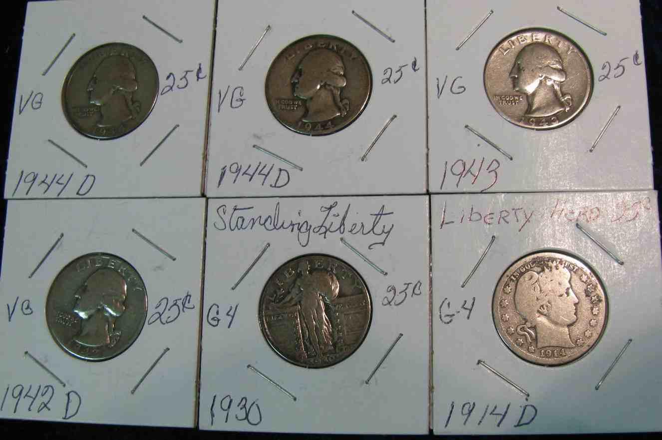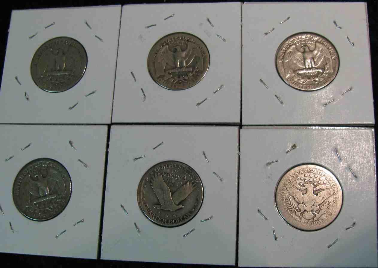 1045. 1914D, 30P, 42D, 43P, & (2) 44D Silver Quarters. G-VG.