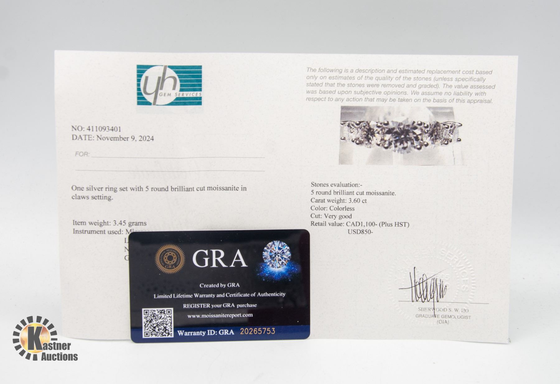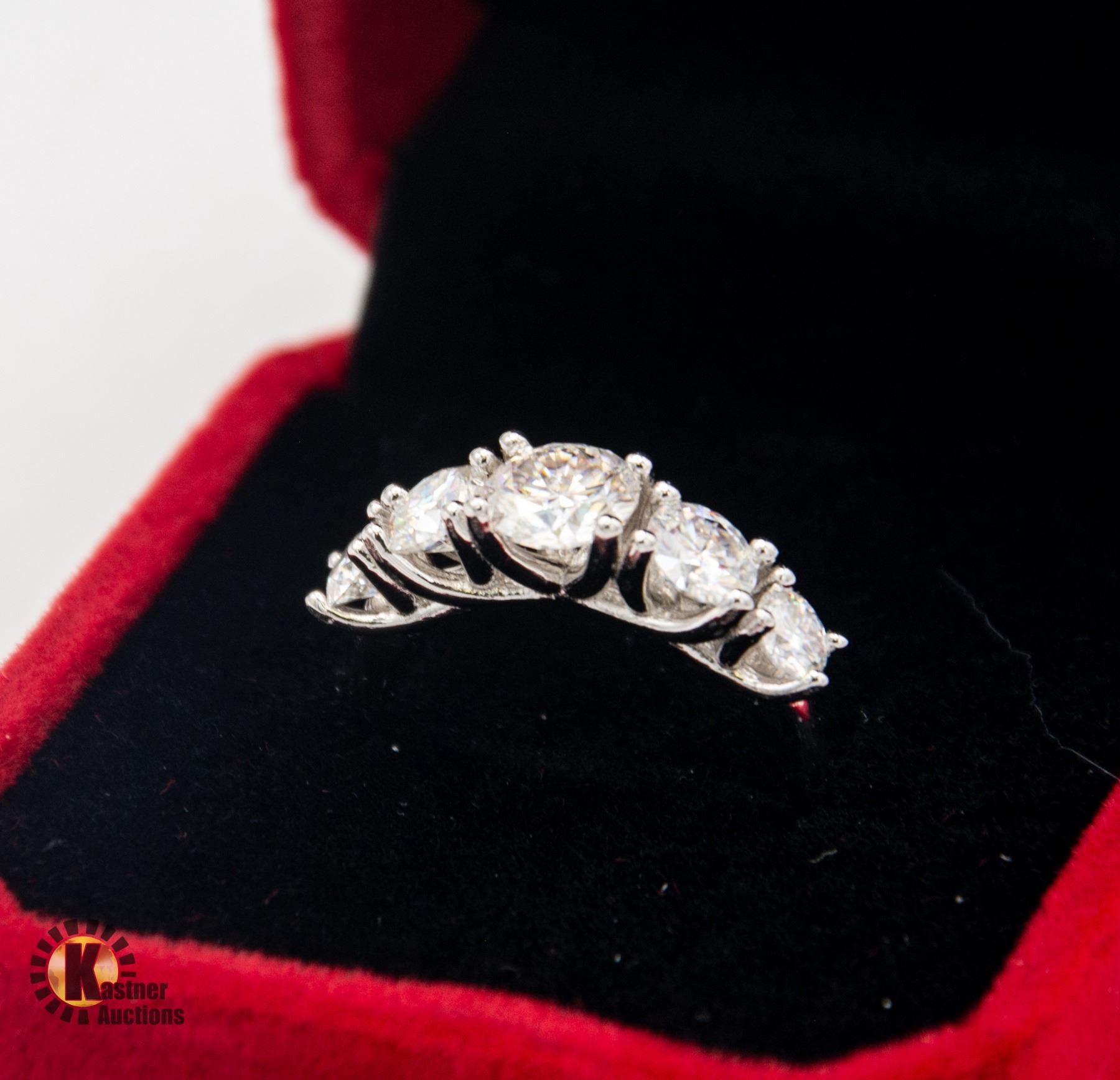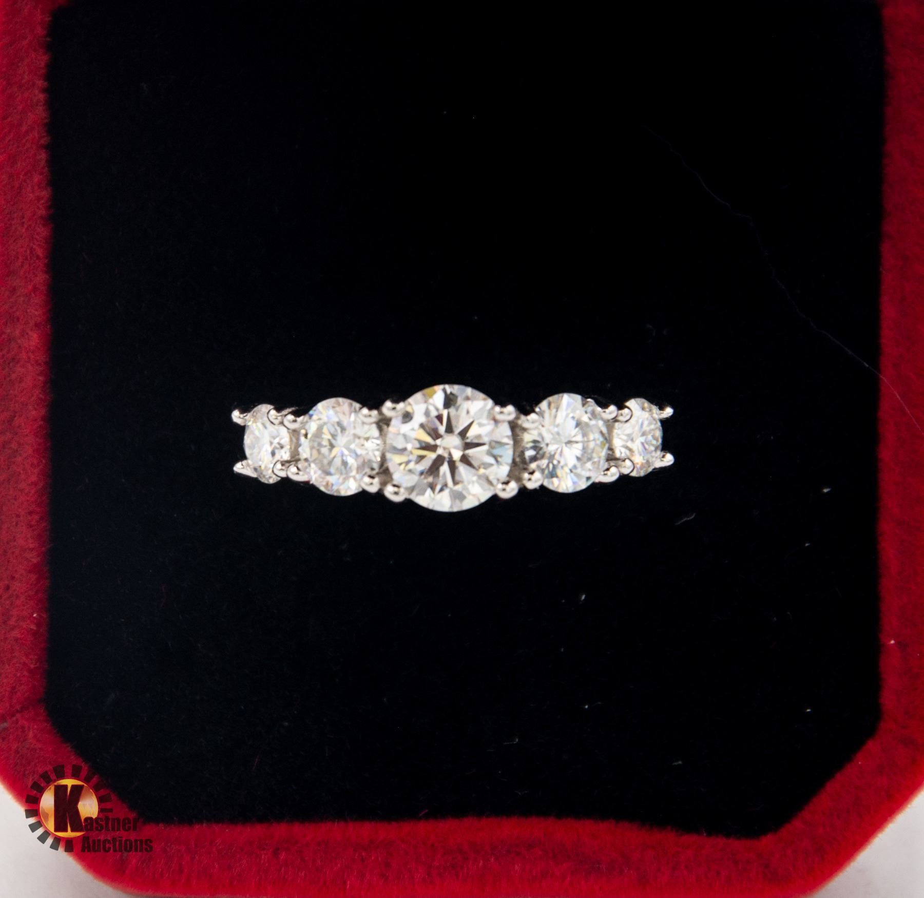MOISSANITE STONE VVS D COLOR WITH THE 5 STONES GRADUATING IN SIZE FROM THE CENTER TO EACH SIDE SET IN 925 SILVER RING SIZE 7.25 RETAIL VALUE $1,100.00