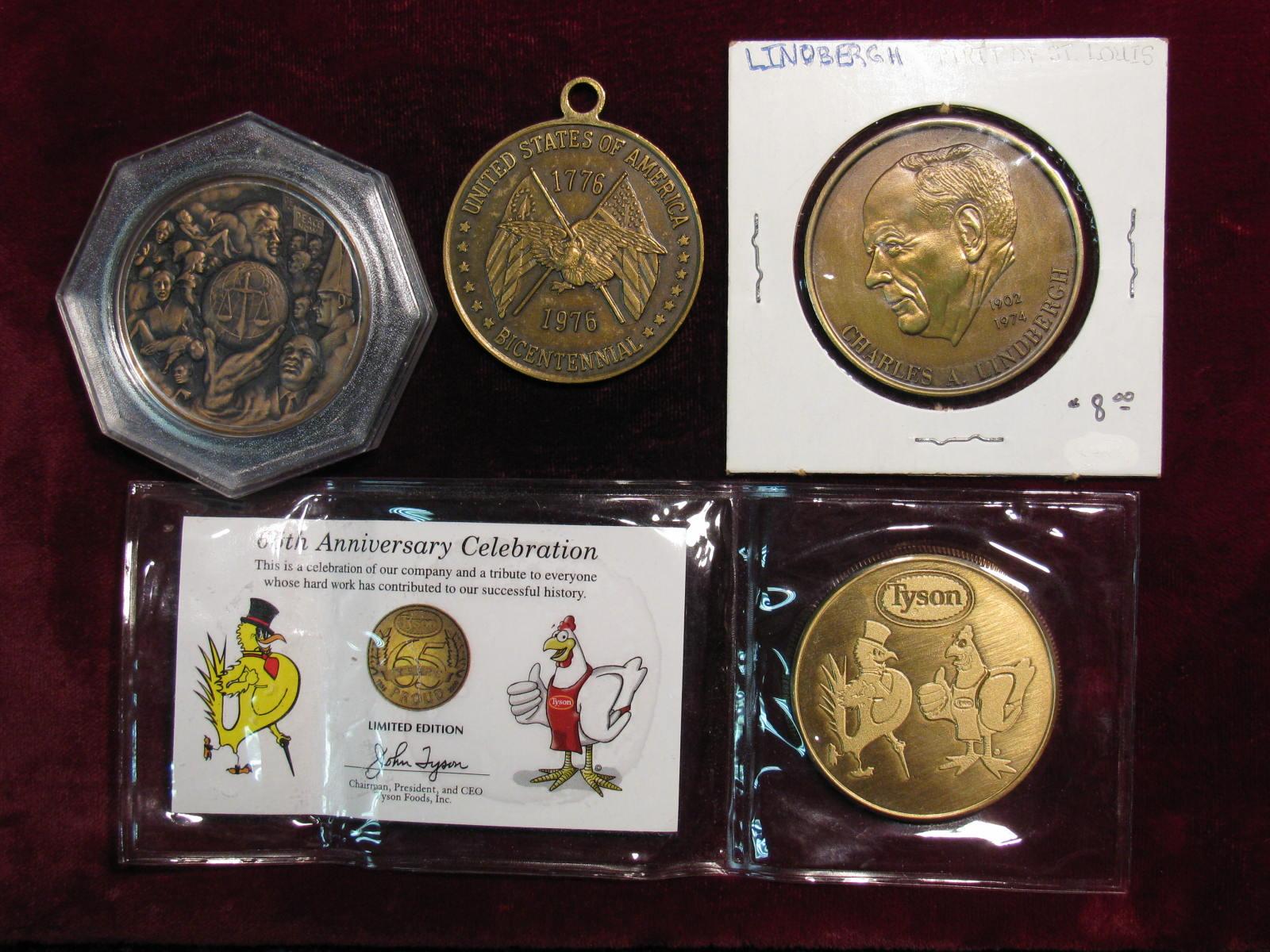 1045. (4) Bronze Medals, Lindbergh, Tyson, Bicentennial & Peace Pac.