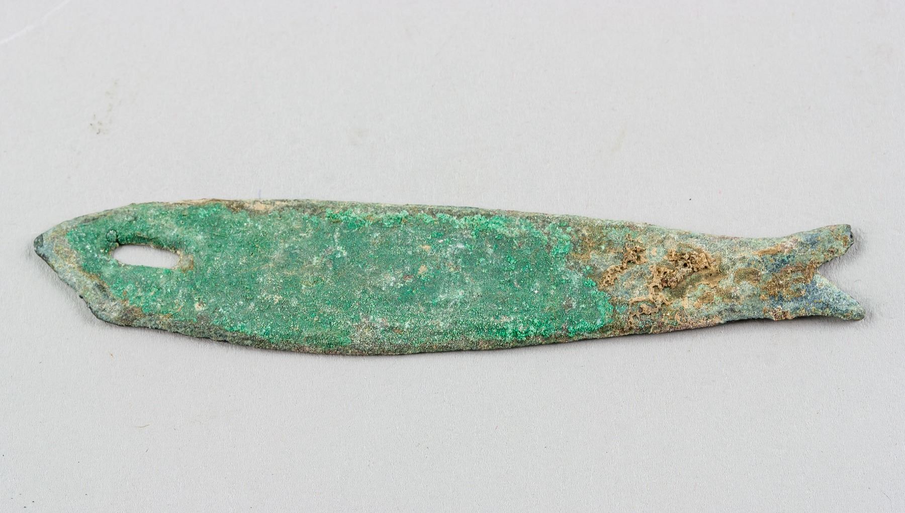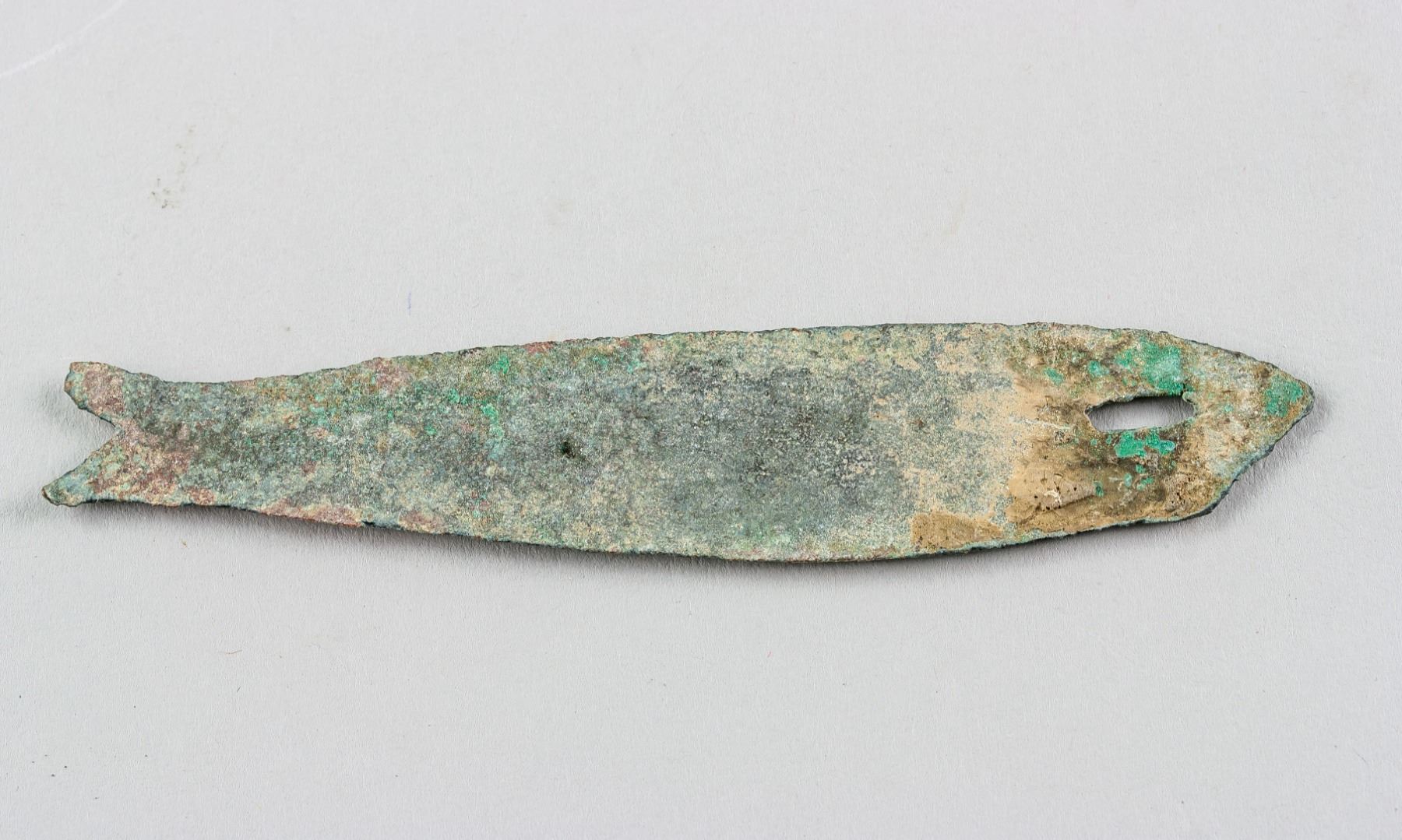 1046-256BC Chinese Zhou dynasty bronze fish money of fish form, 10 x 1.9 cm, 16.54 grams