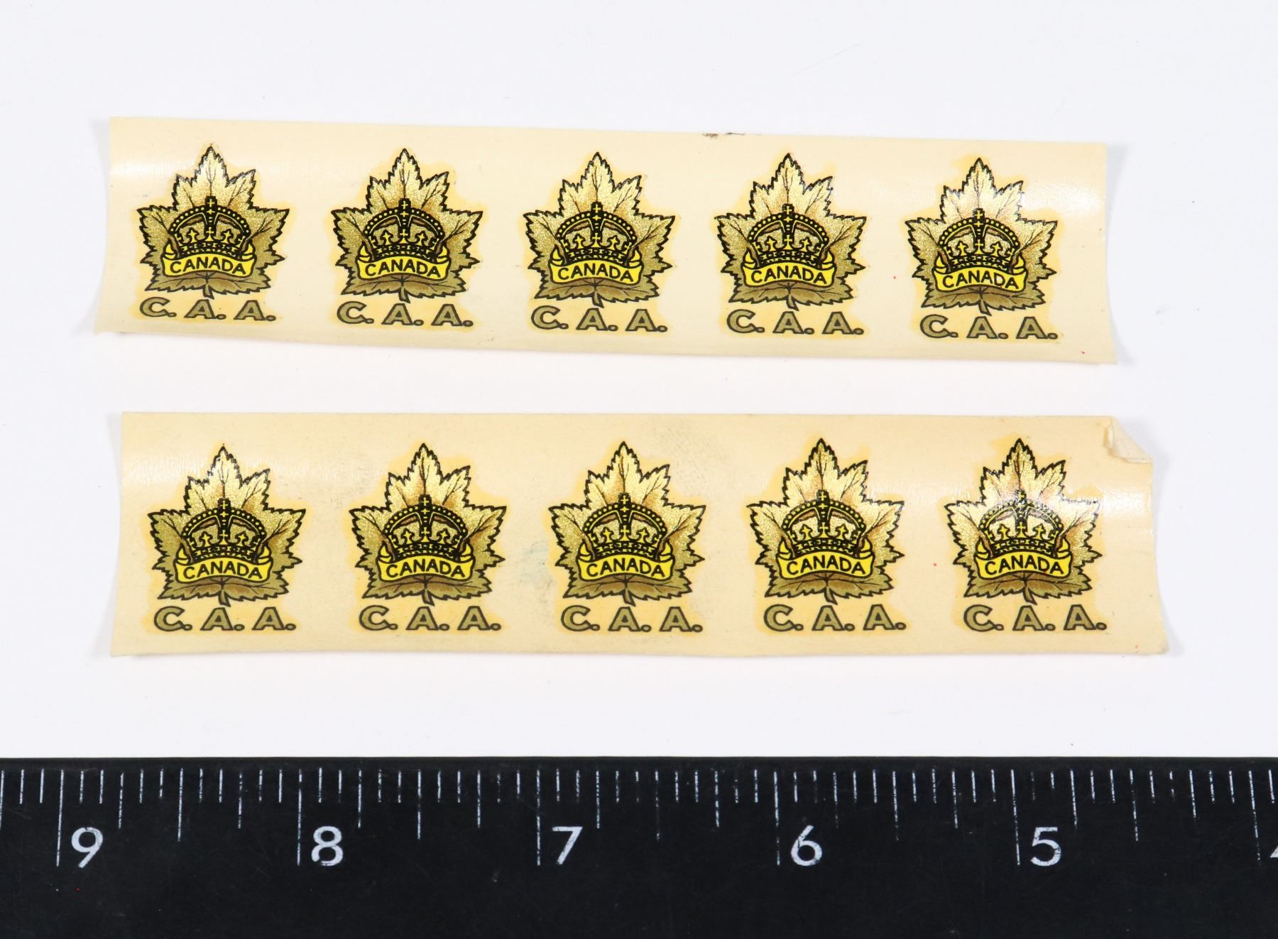 LOT OF 10 VINTAGE C.A.A. CAA DECALS 4832B RUDECAL TRANSFERS LIMITED TORONTO ONTARIO CANADA WATER DECAL FOR APPLICATION TO CAR WINDOW ETC