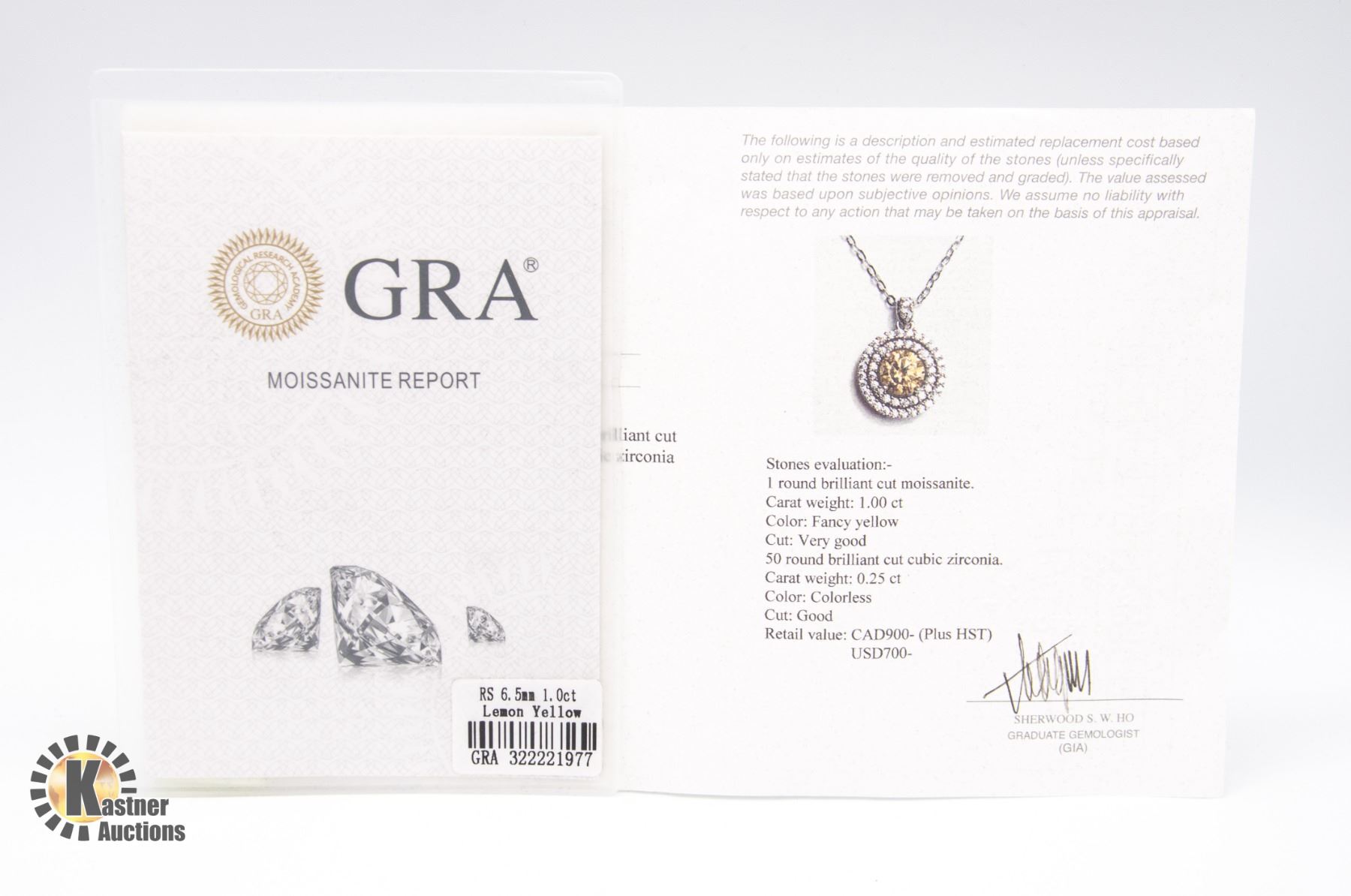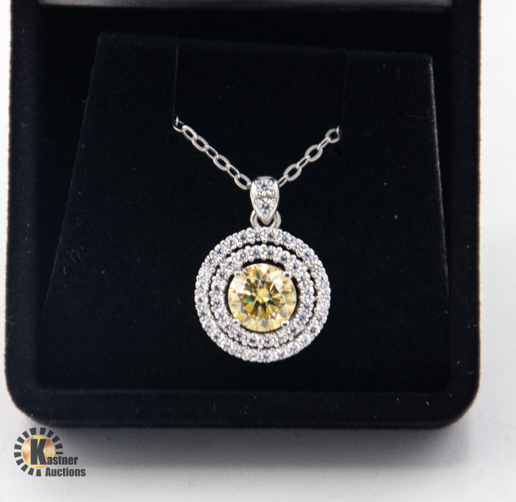 MOISSANITE STONE VVS FANCY YELLOW COLOR SET IN DOUBLE ROUND HALO’S SET IN 925 SILVER PENDANT RETAIL VALUE $900.00 **ALL ITEMS MUST BE REMOVED BY 5PM SATURDAY, NOVEMBER 23RD 2024. ALL REMAINING ITEMS WILL BE SUBJECT TO A $6.00 PER DAY STORAGE CHARGE. ANY ITEMS REMAINING AFTER MONDAY, DECEMBER 9TH 2024 WILL BE CONSIDERED FORFEITED. NO REFUNDS WILL BE ISSUED FOR FORFEITED ITEMS. TO SCHEDULE A PICK UP APPOINTMENT CLICK HERE