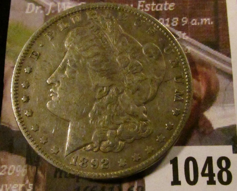 1048 . 1892 Morgan Silver Dollar, XF, better date, value $53