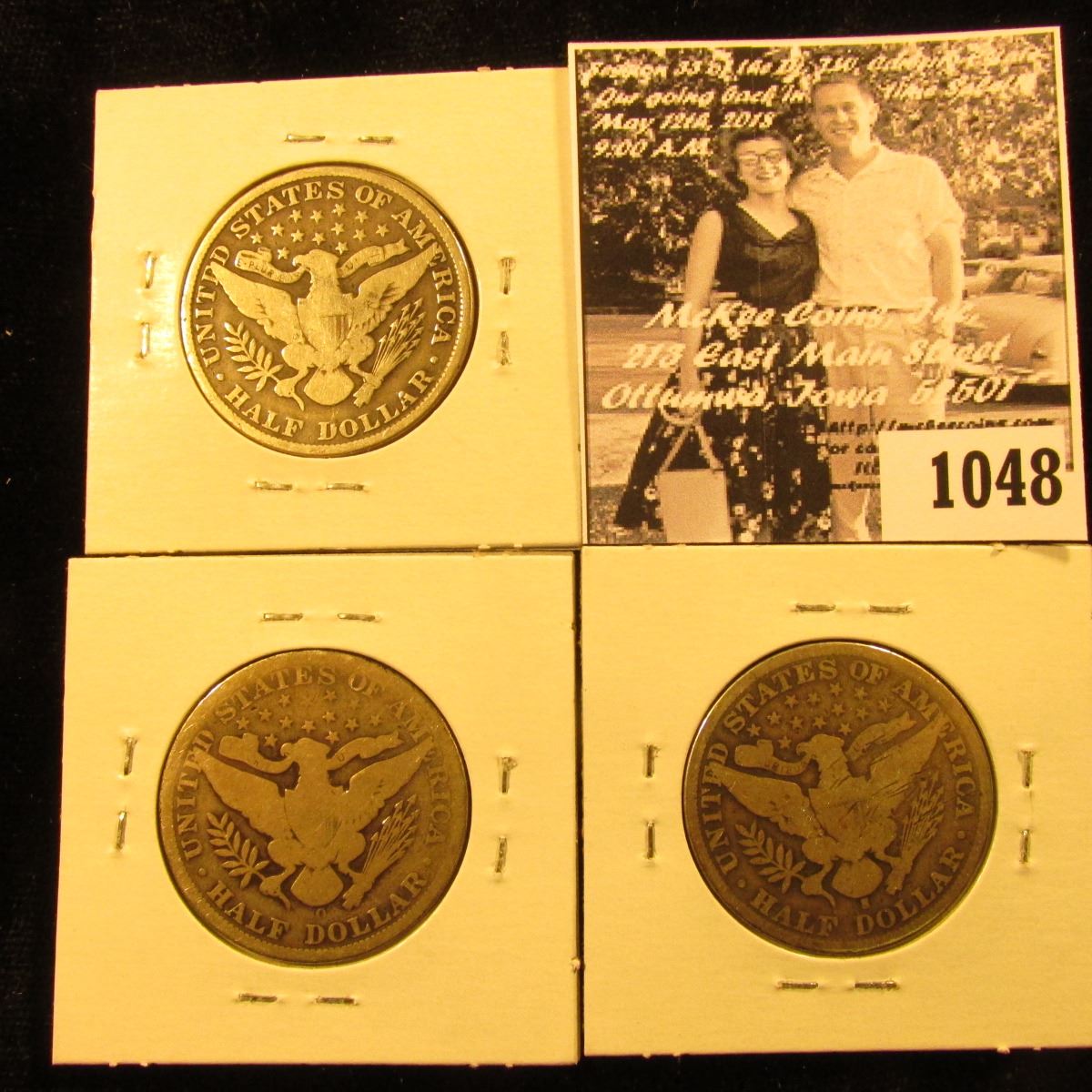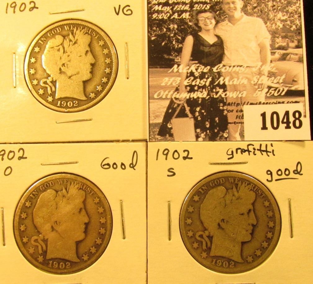 1048 . 1902 P VG, 02 O Good, & 02 S Good with grafitti U.S. Barber Half Dollars.