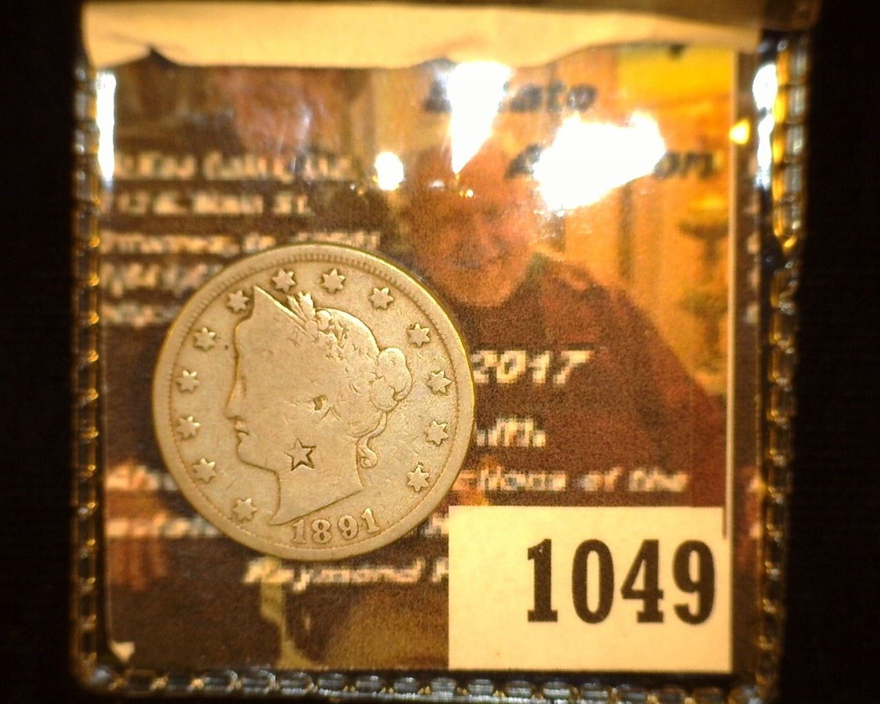 1049. 1891 Liberty Nickel with c/s of a five-pointed star on both sides.