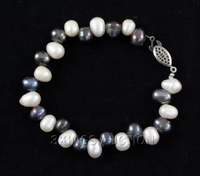 105.23CTW 9" WHITE-BLACK FRESHWATER PEARL BRACELET META **|**|** 105.23CTW 9" WHITE-BLACK FRESHWATER PEARL BRACELET METAL LOCK PHILIPPINES ; MSRP: $100