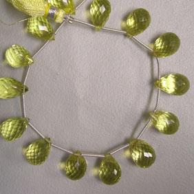 LEMON CITRINE BRIOLETTE STRAND. IT WEIGHTS 105 CTS AND EACH BEAD MEASURES 12x8 MM APPROX. TOP DRILLED. INCLUDED