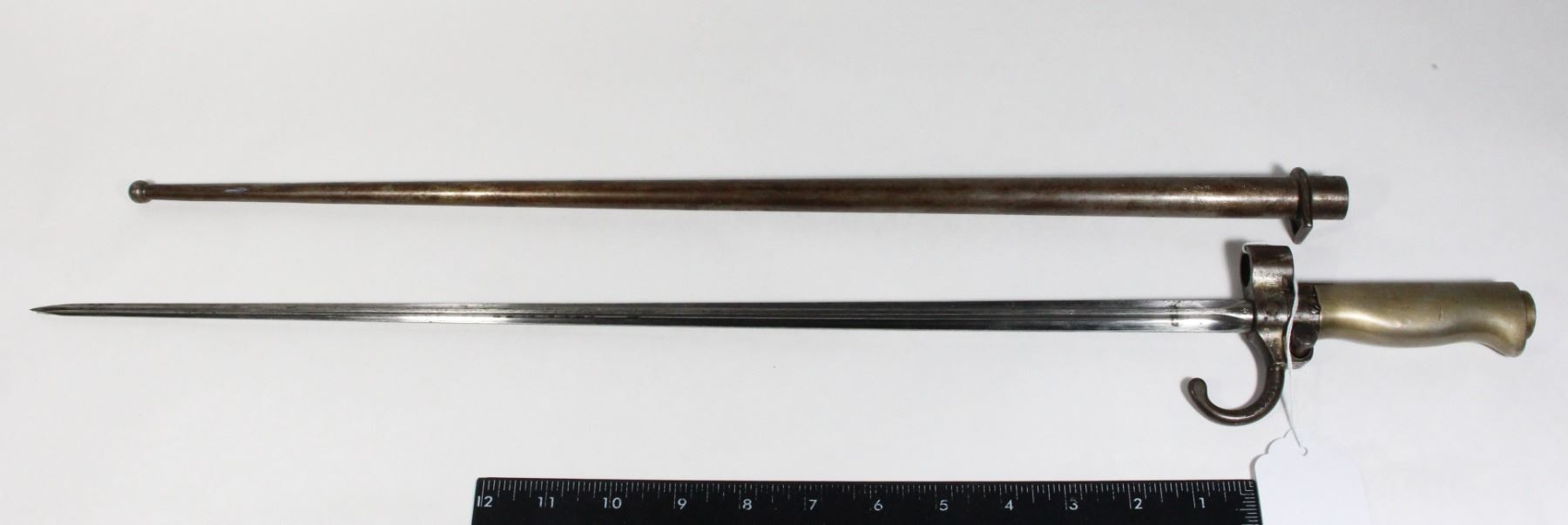 WITH SCABBARD 25.5 TOTAL INCHES IN SIZE 1800'S FRENCH MILITARY FRANCE BAYONET BLADE