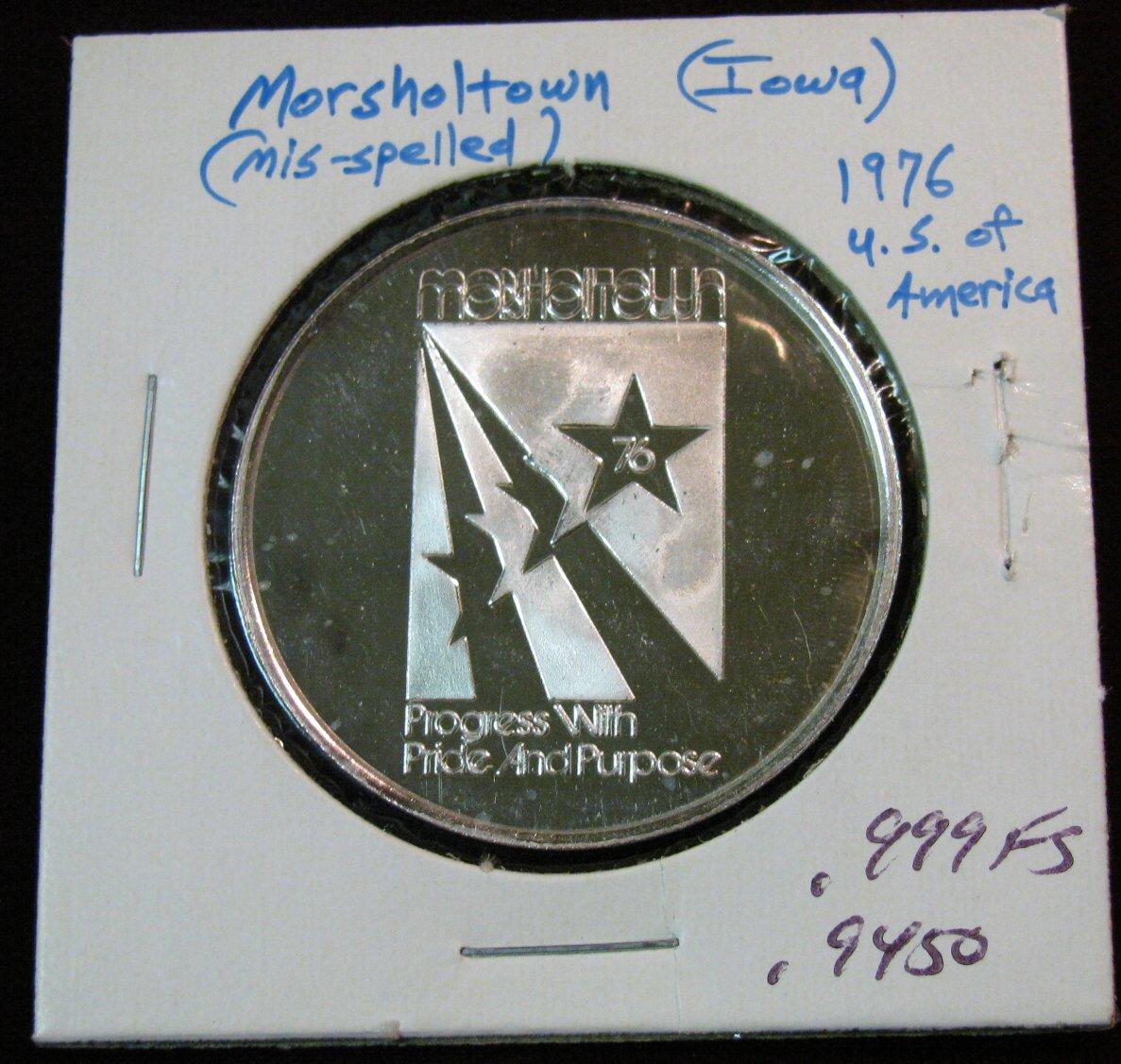 1051. 1776-1976 Morsholtown (msp) (Ia.) U.S. of America Proof .999 FS Medal. Weighs .9450 oz.