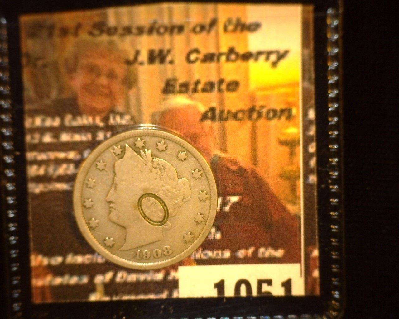 1051. 1908 Liberty Nickel with c/s of a "0" on both sides.