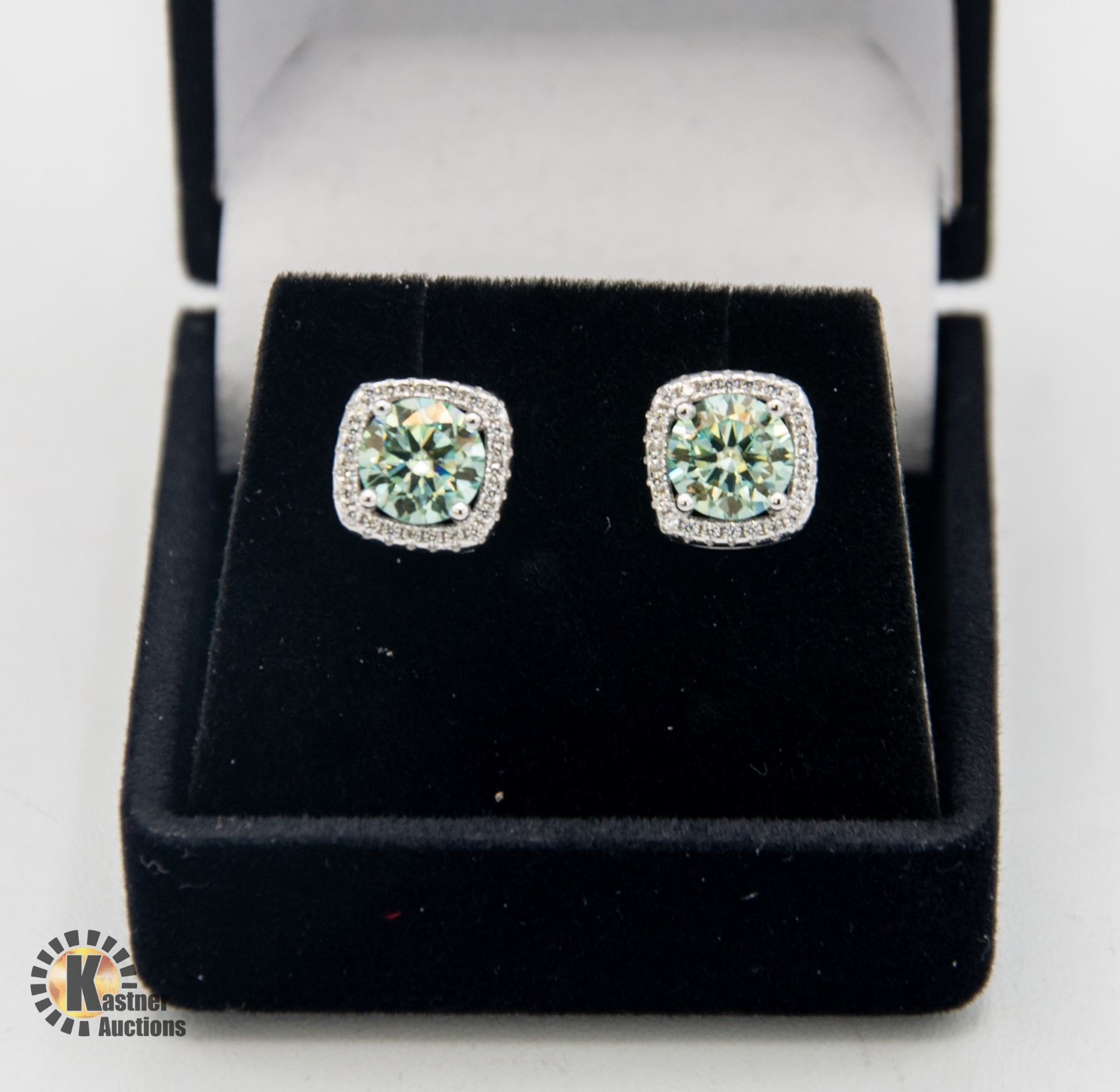 MOISSANITE STONES VVS BLUE COLOR SET IN CENTER OF SQUARE HALO SET WITH ROUND BRILLIANT CUT CUBIC ZIRCONIA SET IN 925 SILVER EARRINGS
