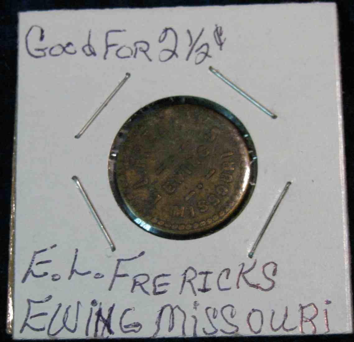 1053. E.L. Fredricks Good For 2 1/2c, Ewig, Missouri.