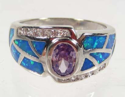 10536 - AMETHYST & BLUE OPAL SILVER RING SIZE 9