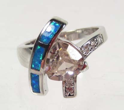 10537 - PINK, WHITE TOPAZ & BLUE OPAL SILVER RING SIZE 8