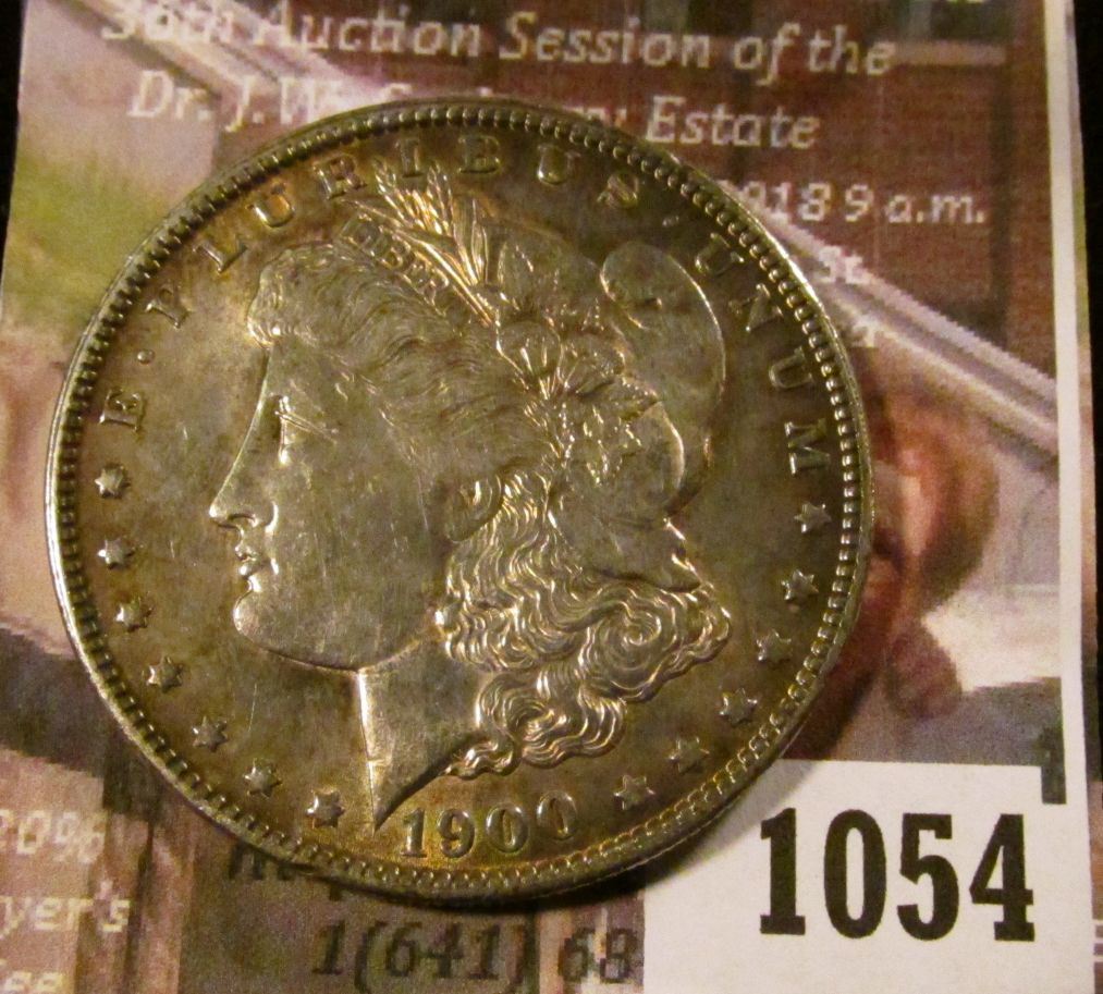 1054 . 1900-O Morgan Silver Dollar, AU toned, reverse has old bulls