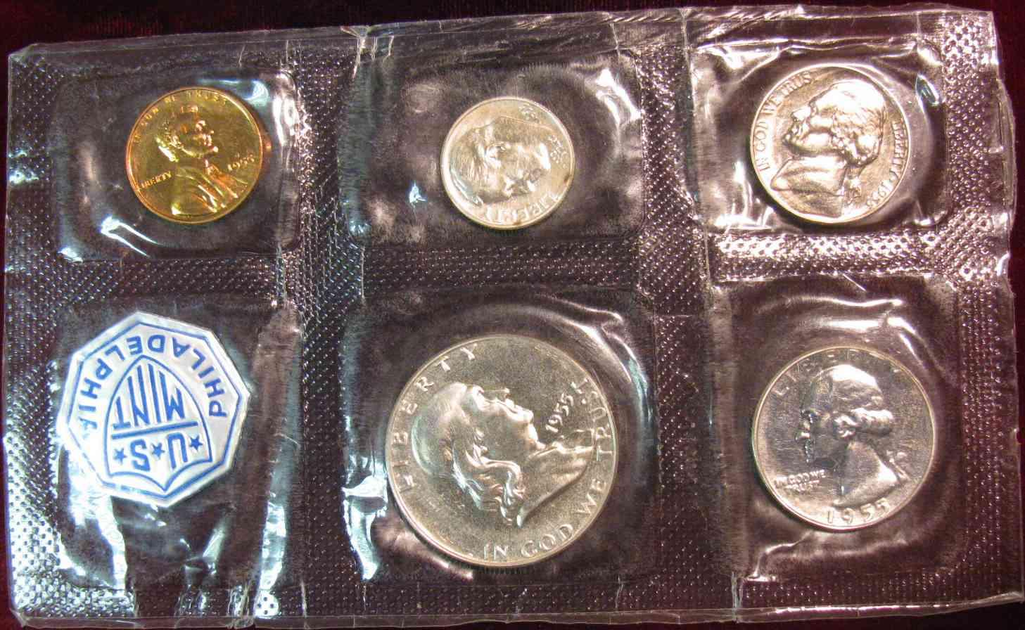 1055. 1955 US Proof Set Flat Pack in original cellophane.