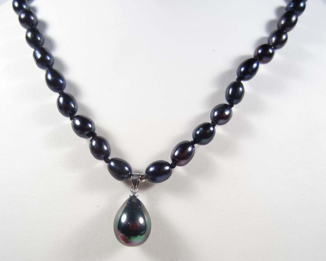 10550 - BLACK TAHITIAN PEARL NECKLACE W/ SHELL PEARL DROP