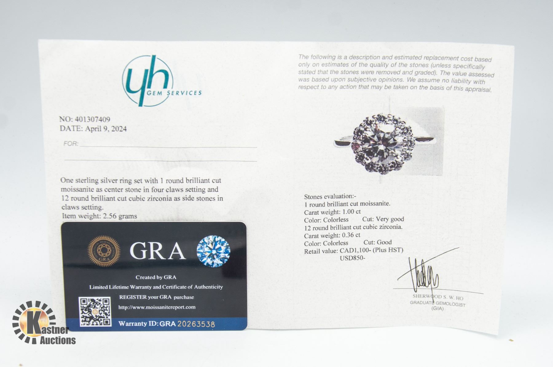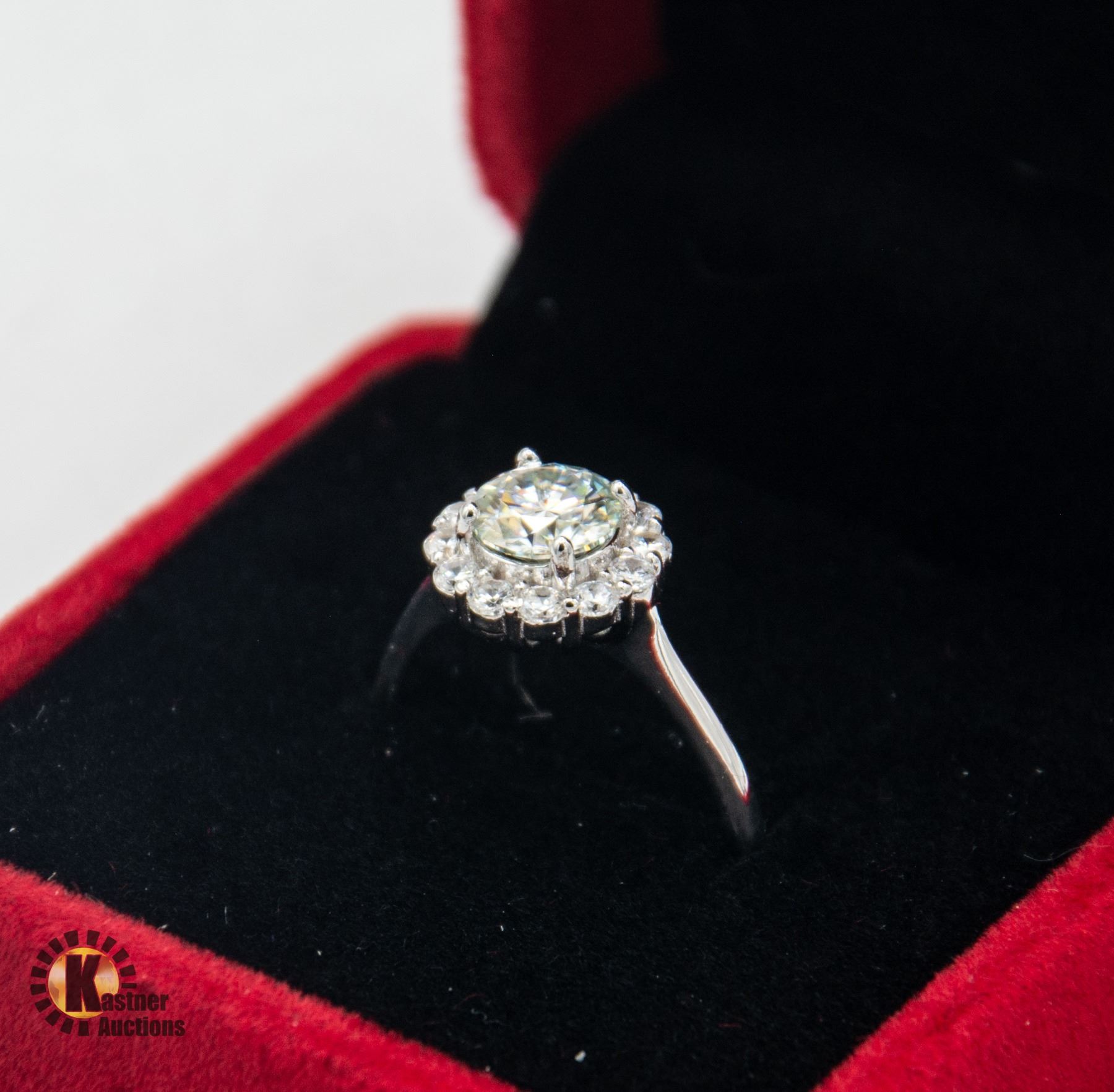MOISSANITE STONE VVS D COLOR SET IN CENTER SET IN 925 SILVER RING SIZE ADJUSTABLE RETAIL VALUE $1,100.00 **ALL ITEMS MUST BE REMOVED BY 5PM SATURDAY, NOVEMBER 30TH 2024. ALL REMAINING ITEMS WILL BE SUBJECT TO A $6.00 PER DAY STORAGE CHARGE. ANY ITEMS REMAINING AFTER MONDAY, DECEMBER 16TH 2024 WILL BE CONSIDERED FORFEITED. NO REFUNDS WILL BE ISSUED FOR FORFEITED ITEMS. TO SCHEDULE A PICK UP APPOINTMENT CLICK HERE