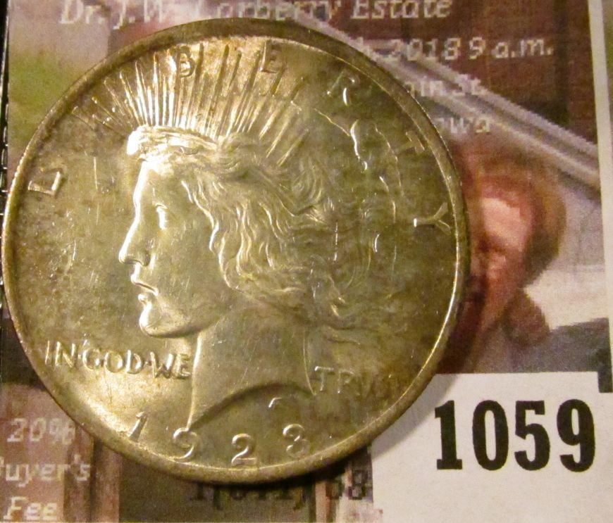 1059 . 1923 Peace Silver Dollar, BU, reverse has light album toning