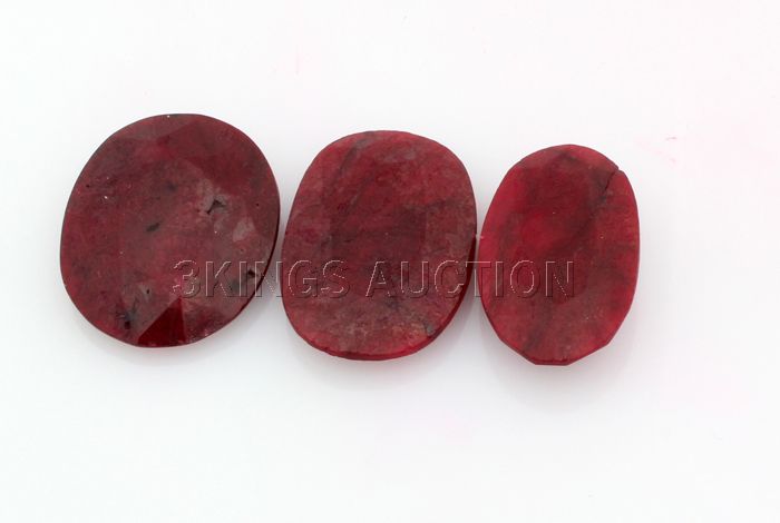 106.00ctw Ruby Oval Cut Loose Gemstone lot of 3 **|**|** Mix Sizes 27-28x17-23x5-7mm Natural Ruby Gemstone Flat Oval Shape lot of 3 ; MSRP: $400